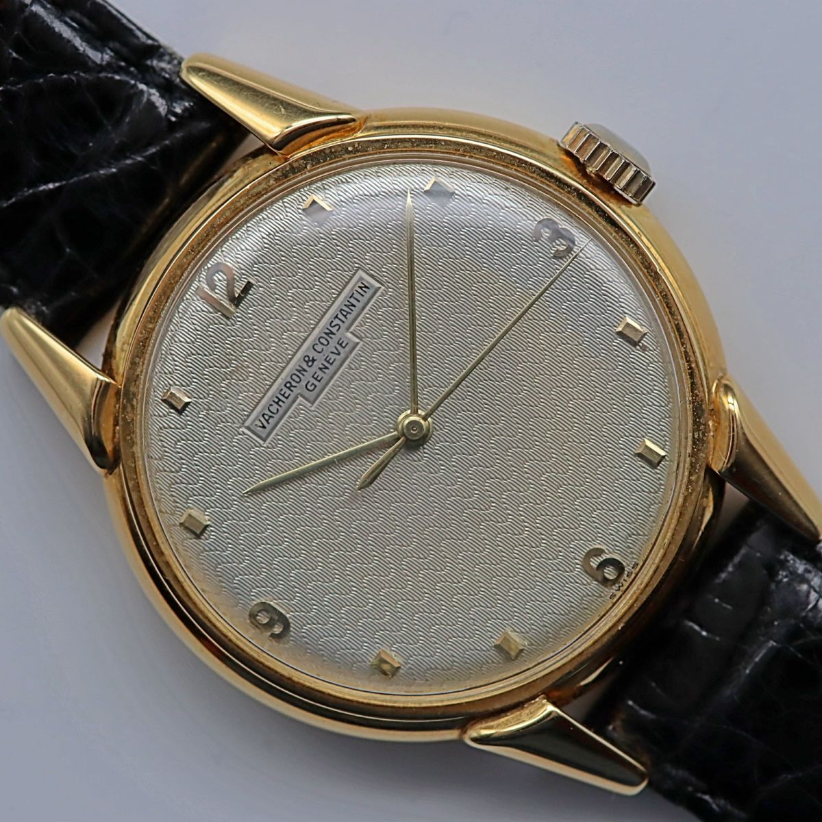Very fine and rare wristwatch 18Kt yellow gold guillochè dial