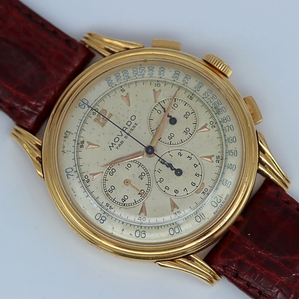 Very rare and fine Movado chronograph 18Kt yellow gold