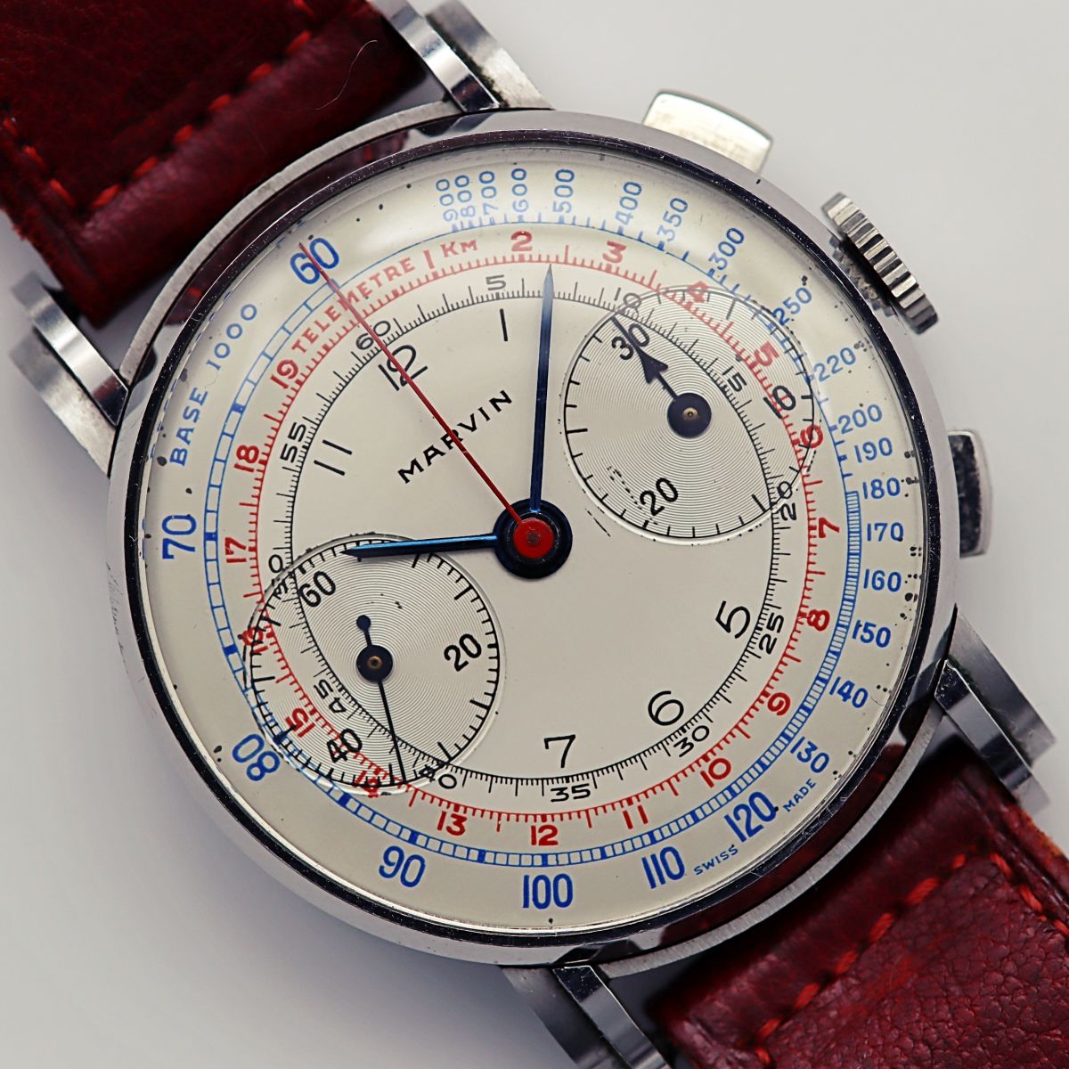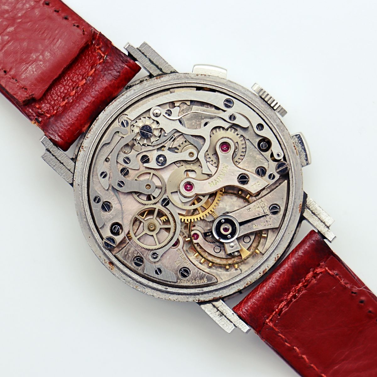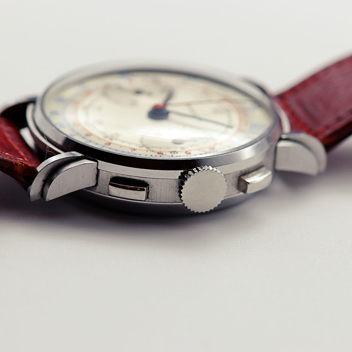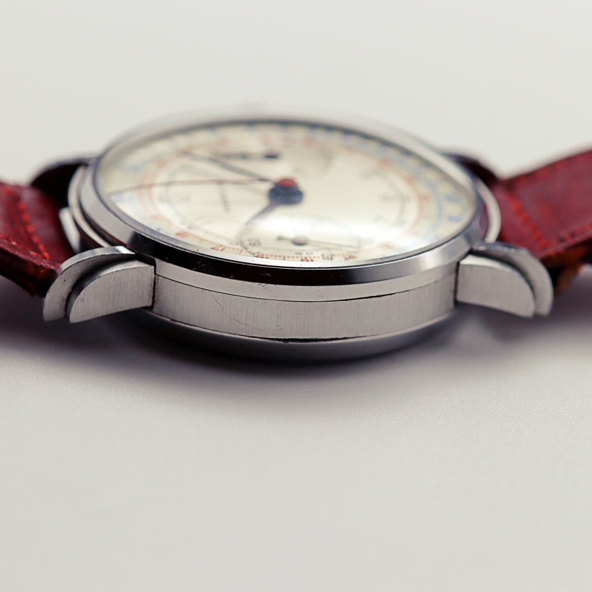 Very fine and rare chronograph stainless steel with an exceptional dial and an unusual case