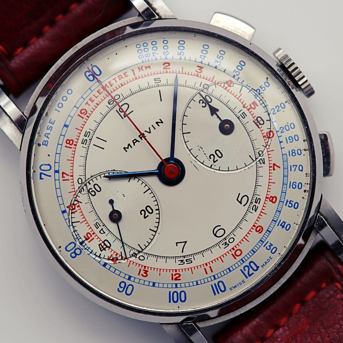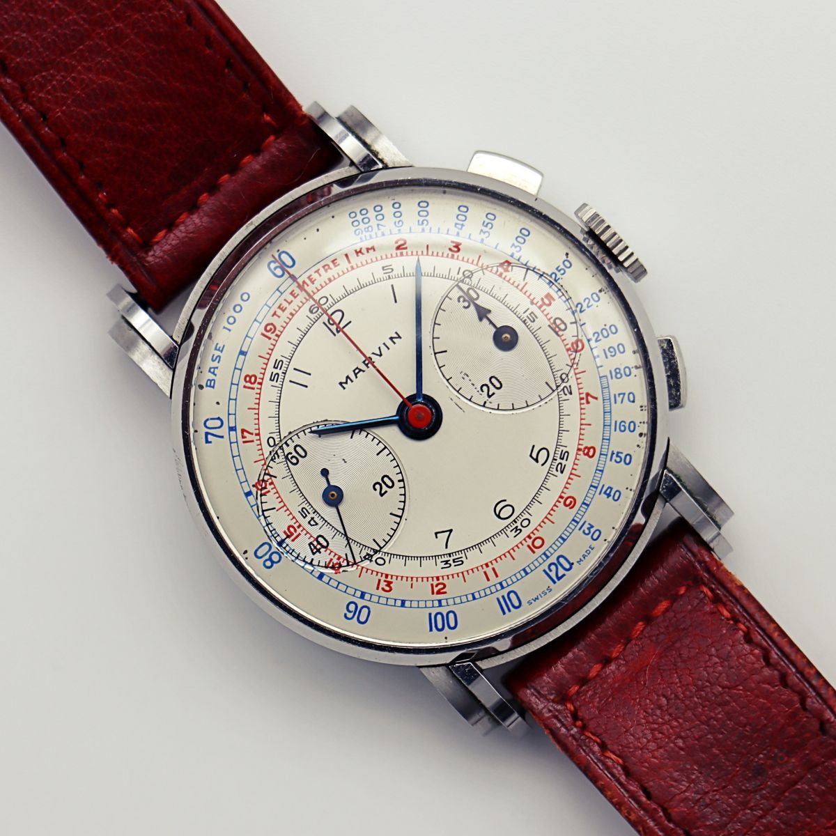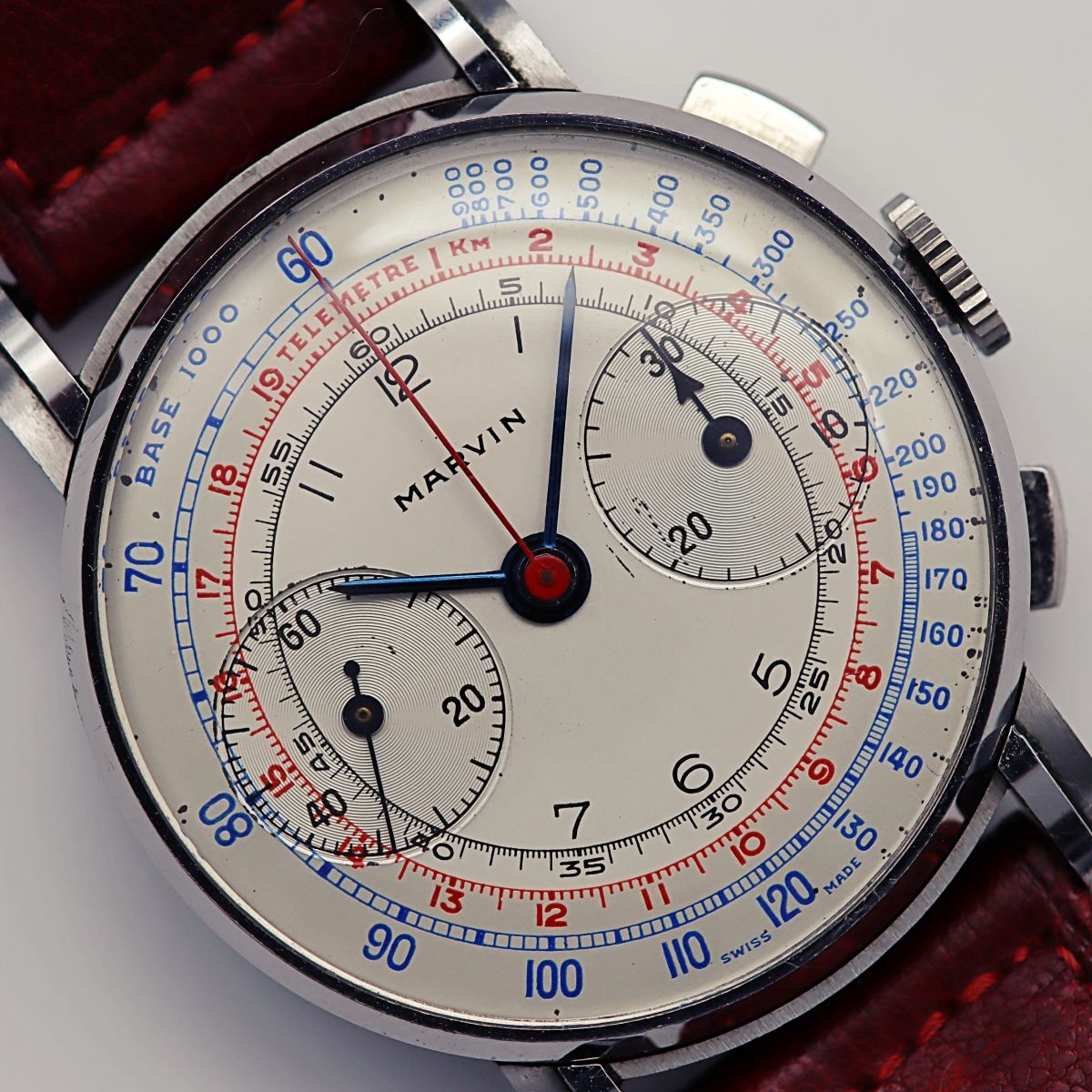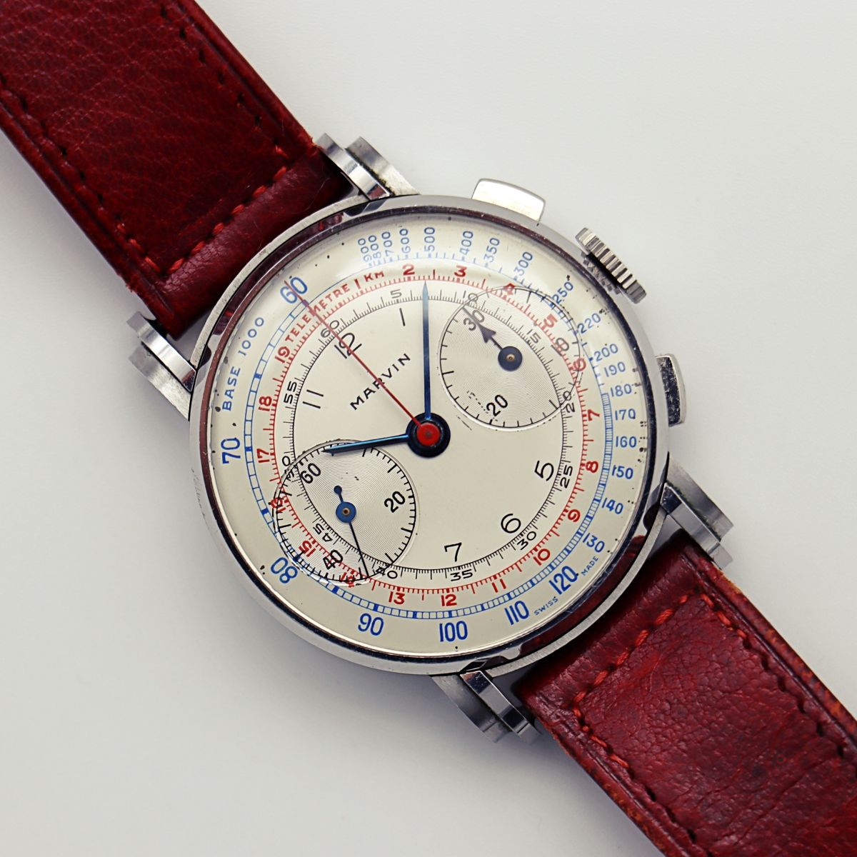 Very fine and rare chronograph stainless steel with an exceptional dial and an unusual case