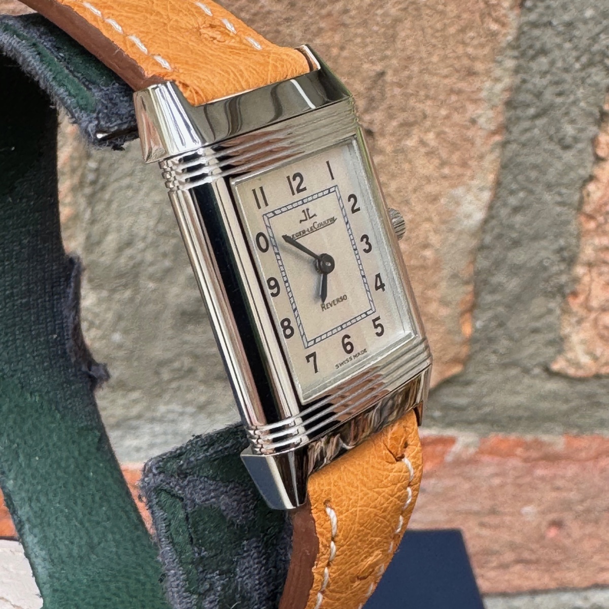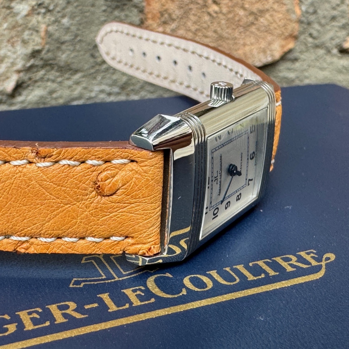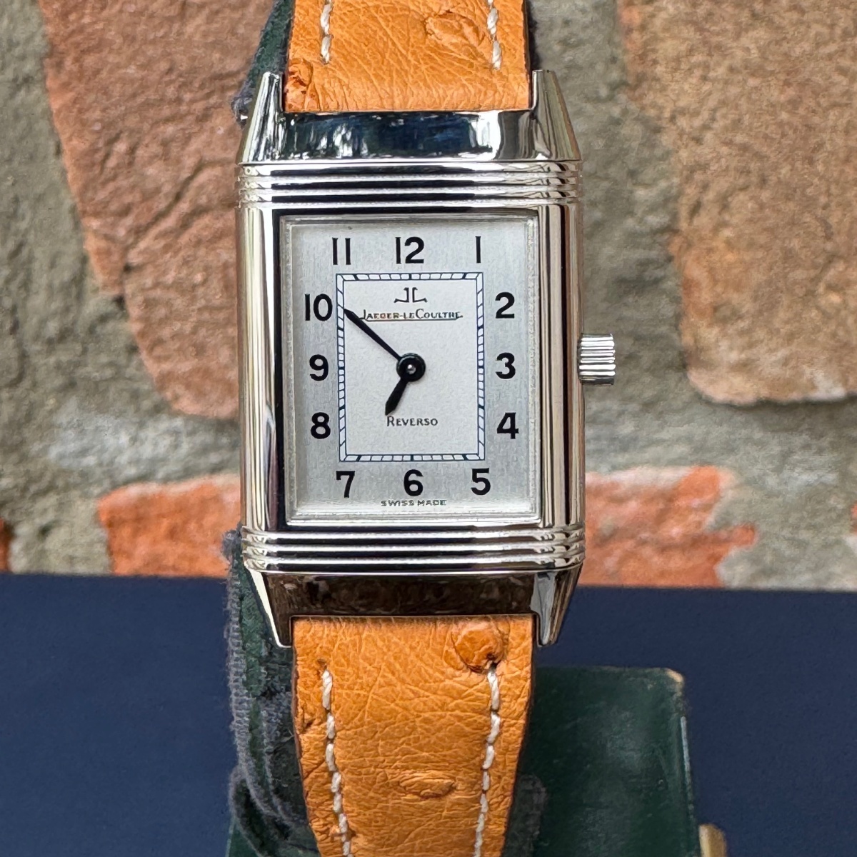 rologio misura lady con movimento carica manuale, in condizioni ottime di pari a nuovo appena completamente revisionato sia nella parte meccanica che estetica. Diponibilità di n.2 cinturini entrambi in struzzo. Completo di scatola e garanzia originale Jlc |