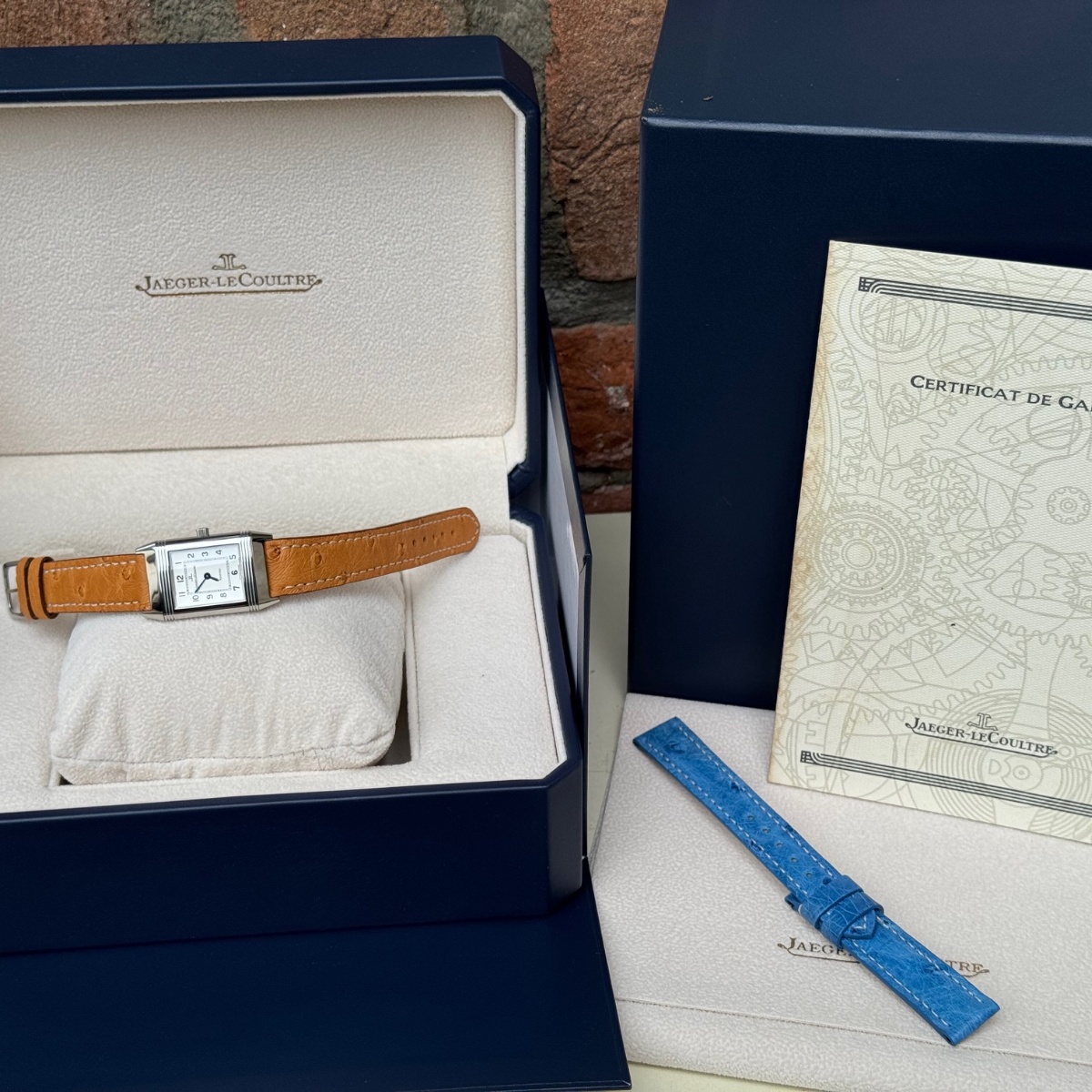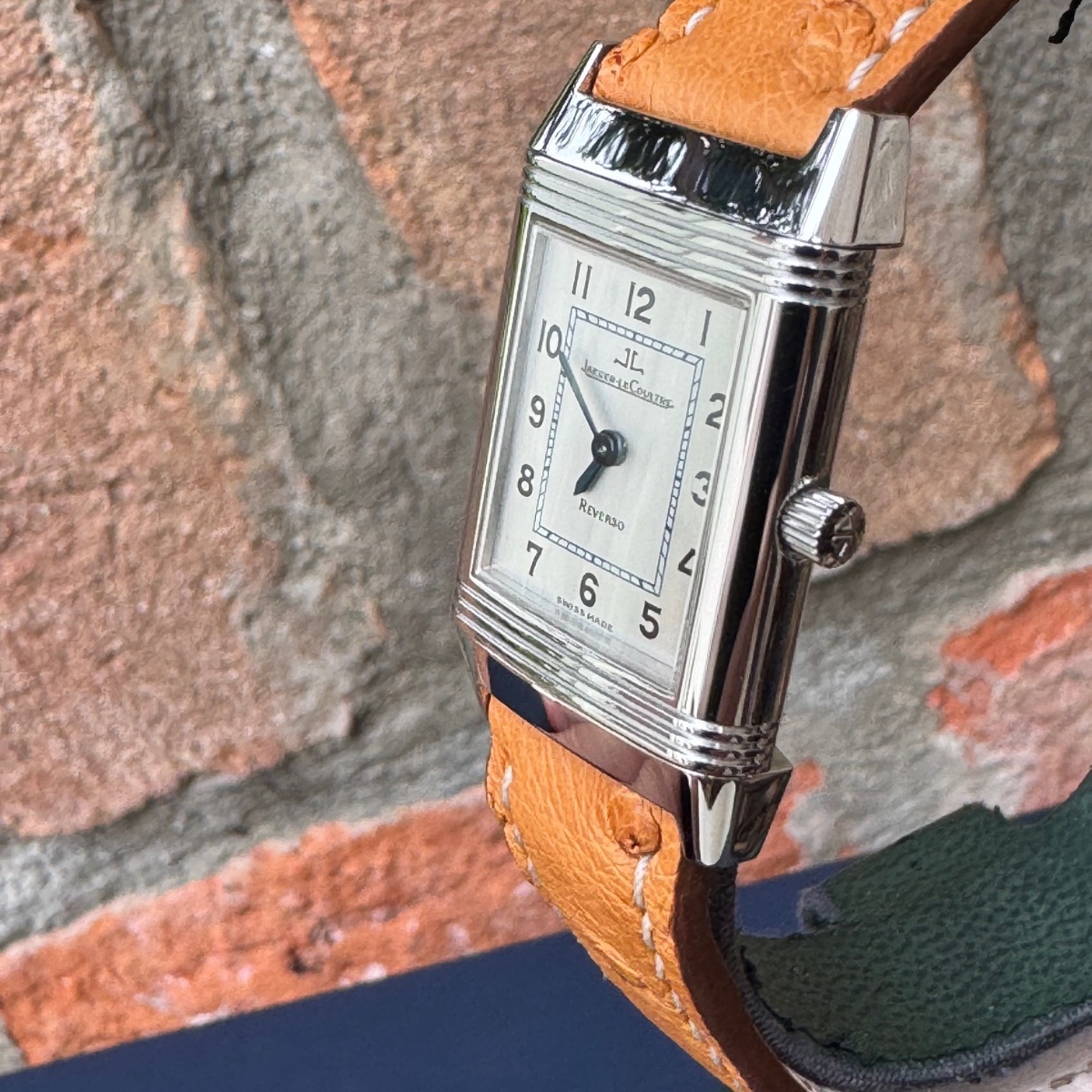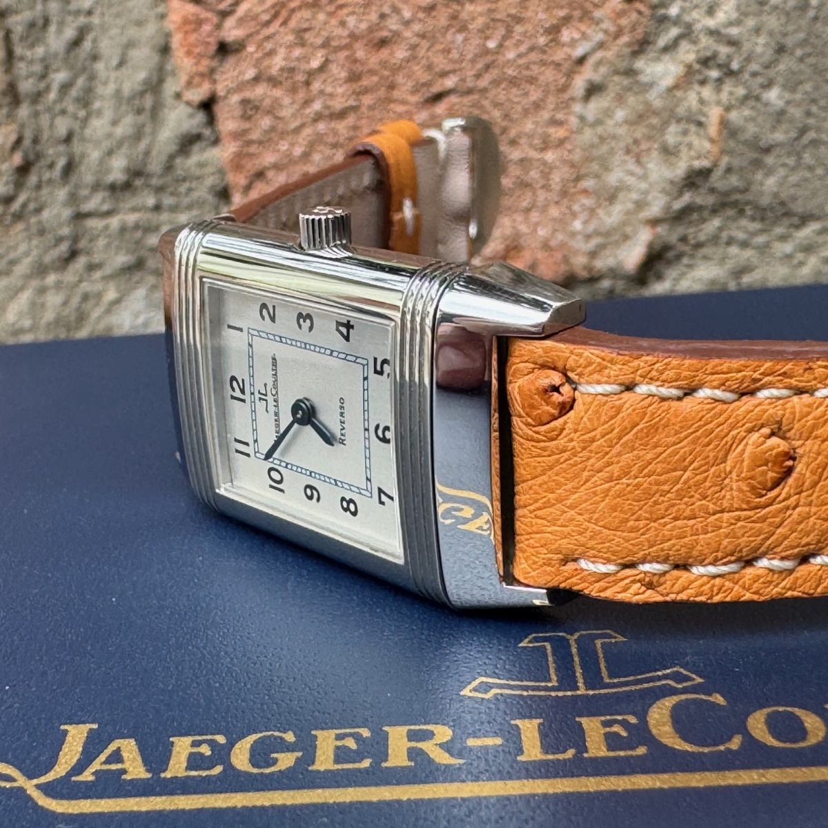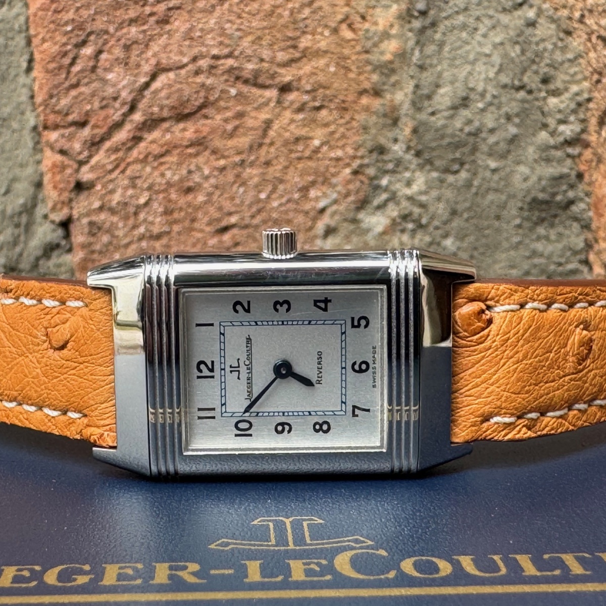 rologio misura lady con movimento carica manuale, in condizioni ottime di pari a nuovo appena completamente revisionato sia nella parte meccanica che estetica. Diponibilità di n.2 cinturini entrambi in struzzo. Completo di scatola e garanzia originale Jlc |