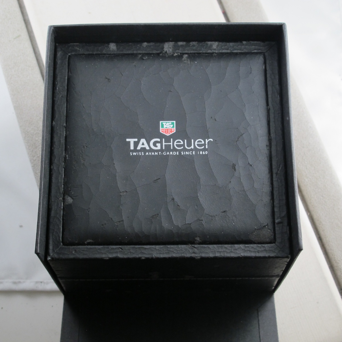 La scatola in pelle presenta delle imperfezioni.