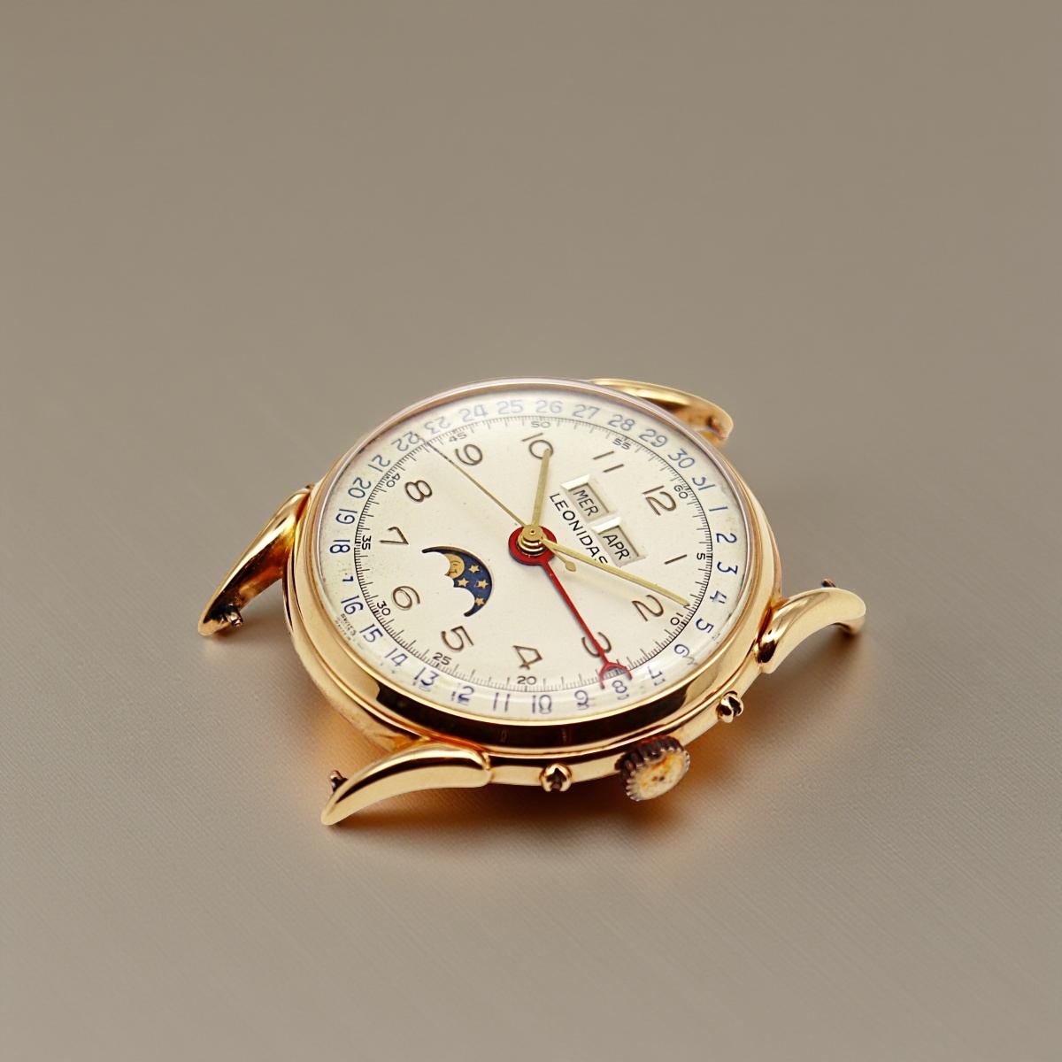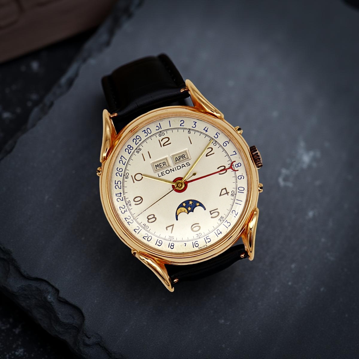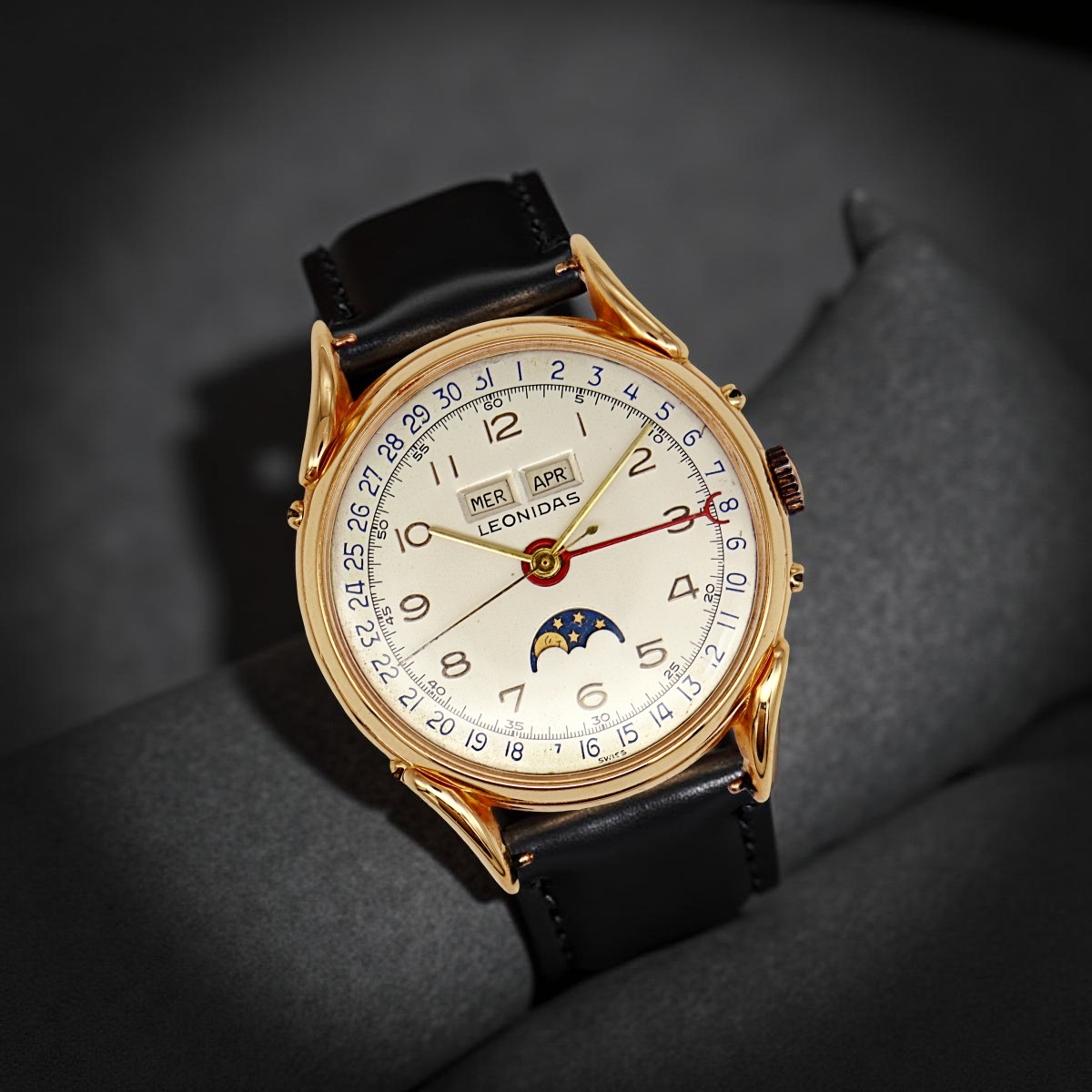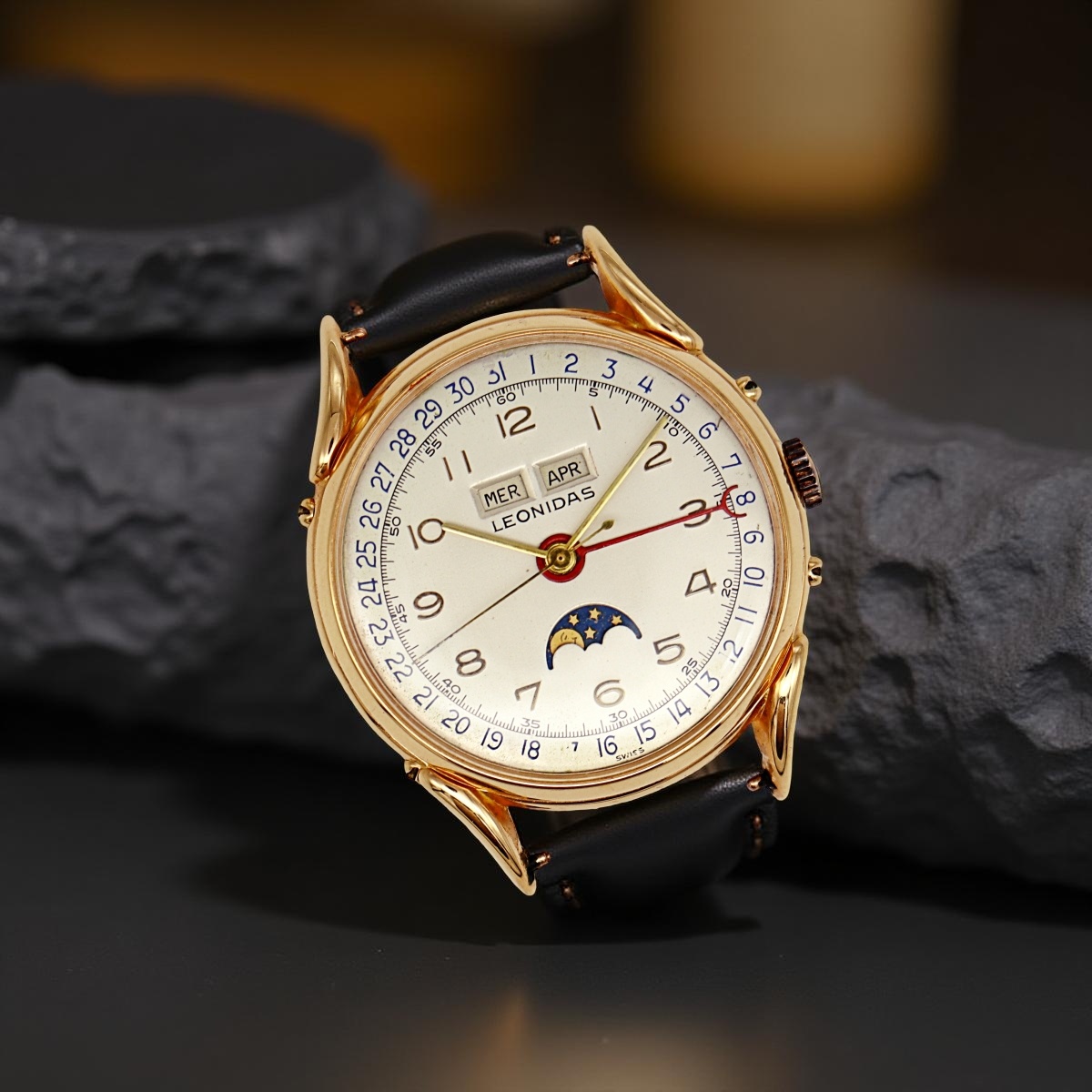 Leonidas full calendar moon phase wristwatch in rose gold,