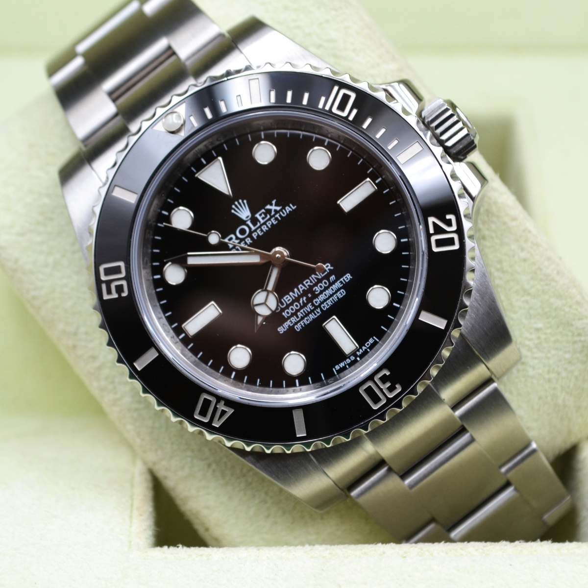Il Rolex Submariner 114060 è un orologio sportivo professionale iconico, parte della famiglia Submariner di Rolex, noto soprattutto per la sua estetica pulita e senza datario. È considerato da molti puristi uno dei Submariner più riusciti e bilanciati.