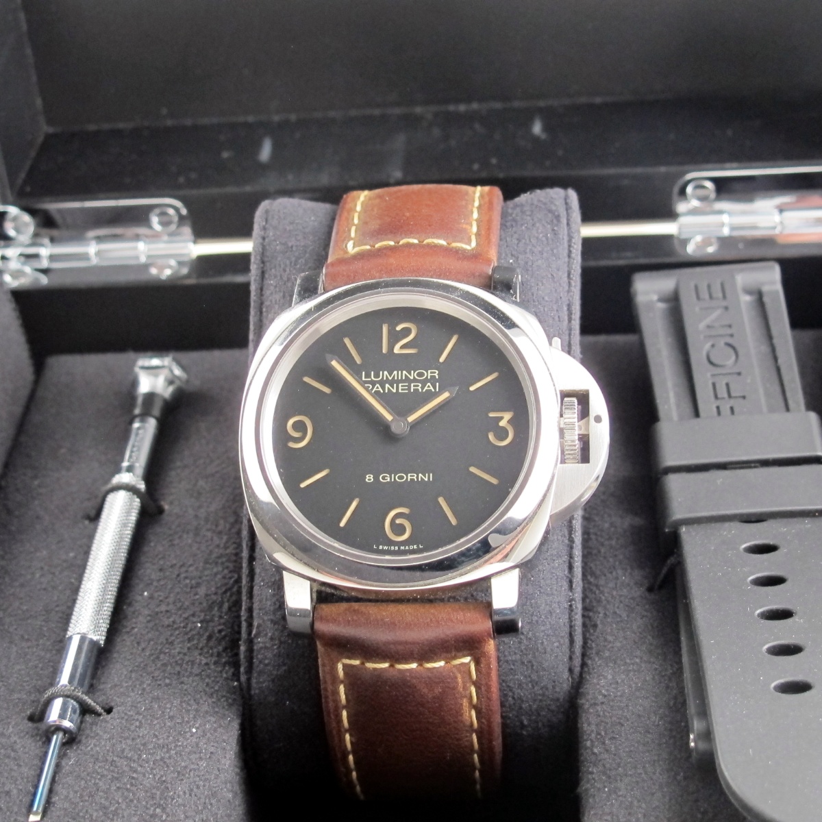 Bellissimo Panerai Luminor 8 giorni in condizioni super, full set anno 2022. Ref. pam 00914 Cassa 44 mm. Movimento manuale calibro p.5000 con riserva di carica otto giorni. Cinturino Scamosciato marrone scuro e secondo Cinturino rubber.