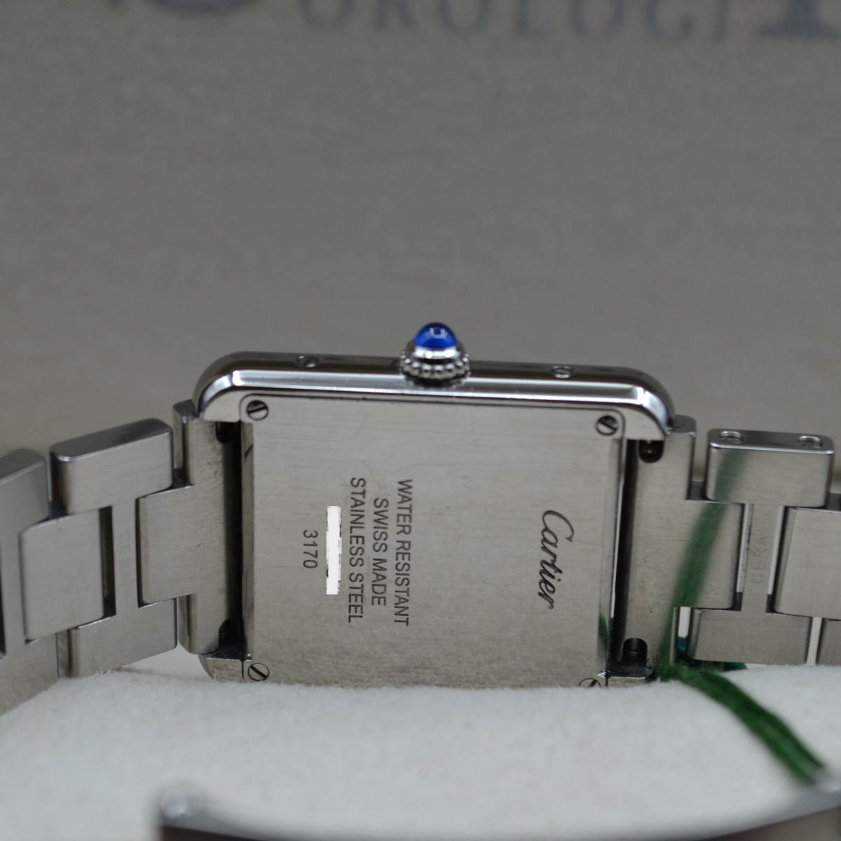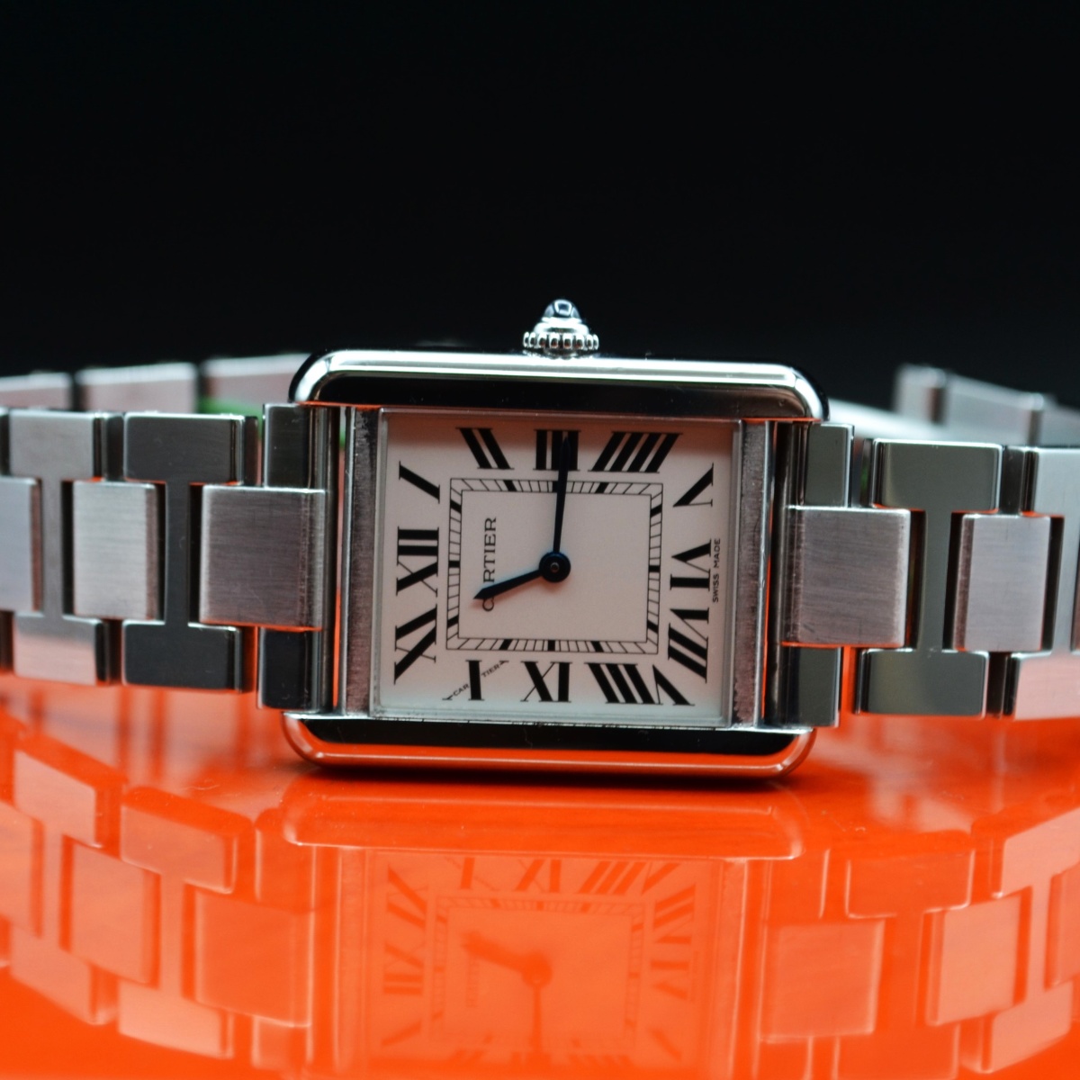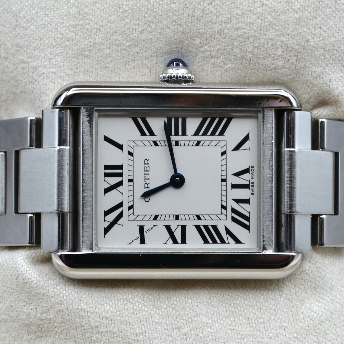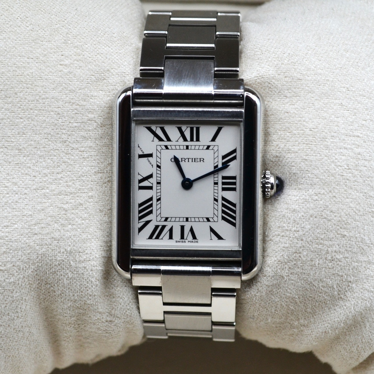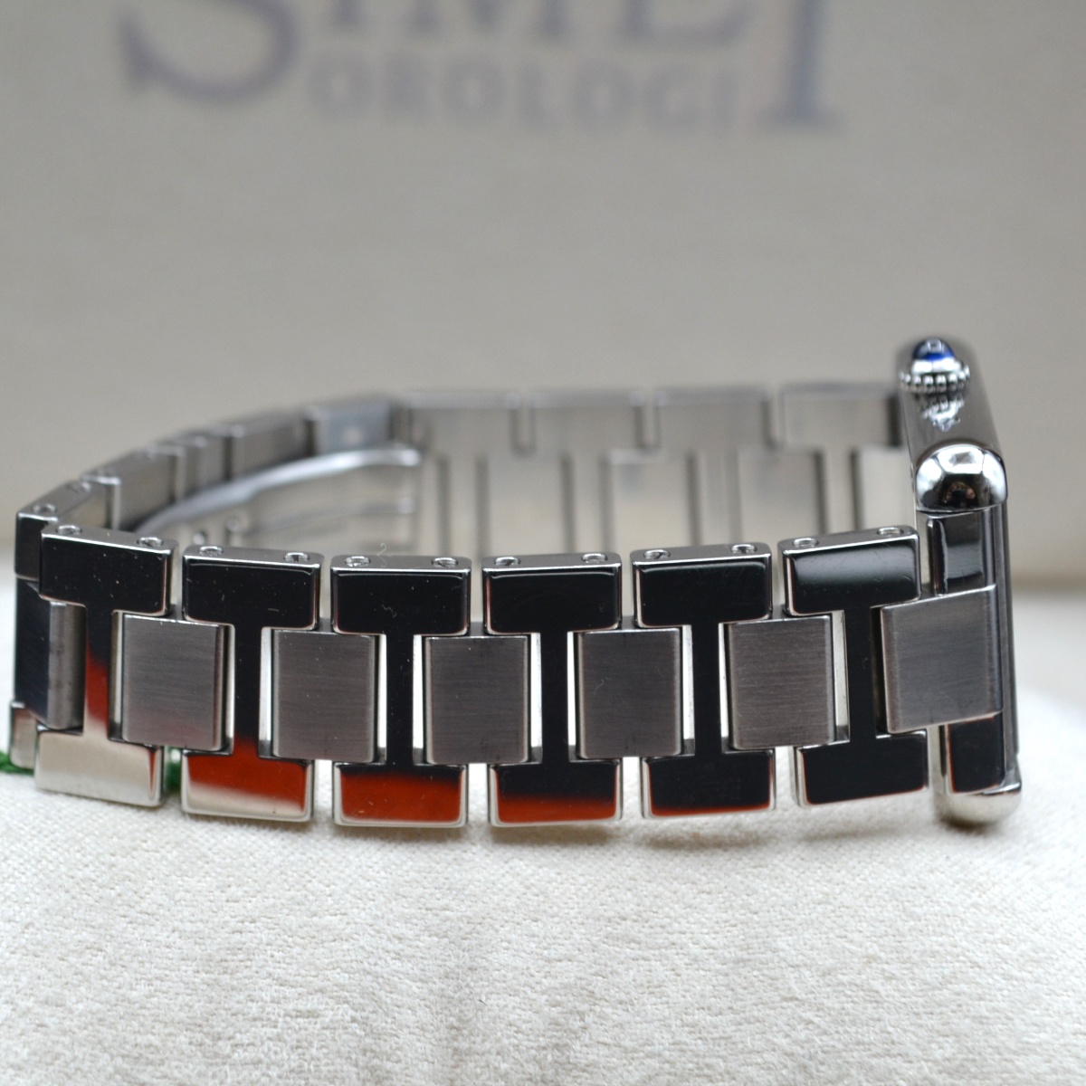 Lancette a forma di spada in acciaio azzurrato o blued steel, tipiche di Cartier.