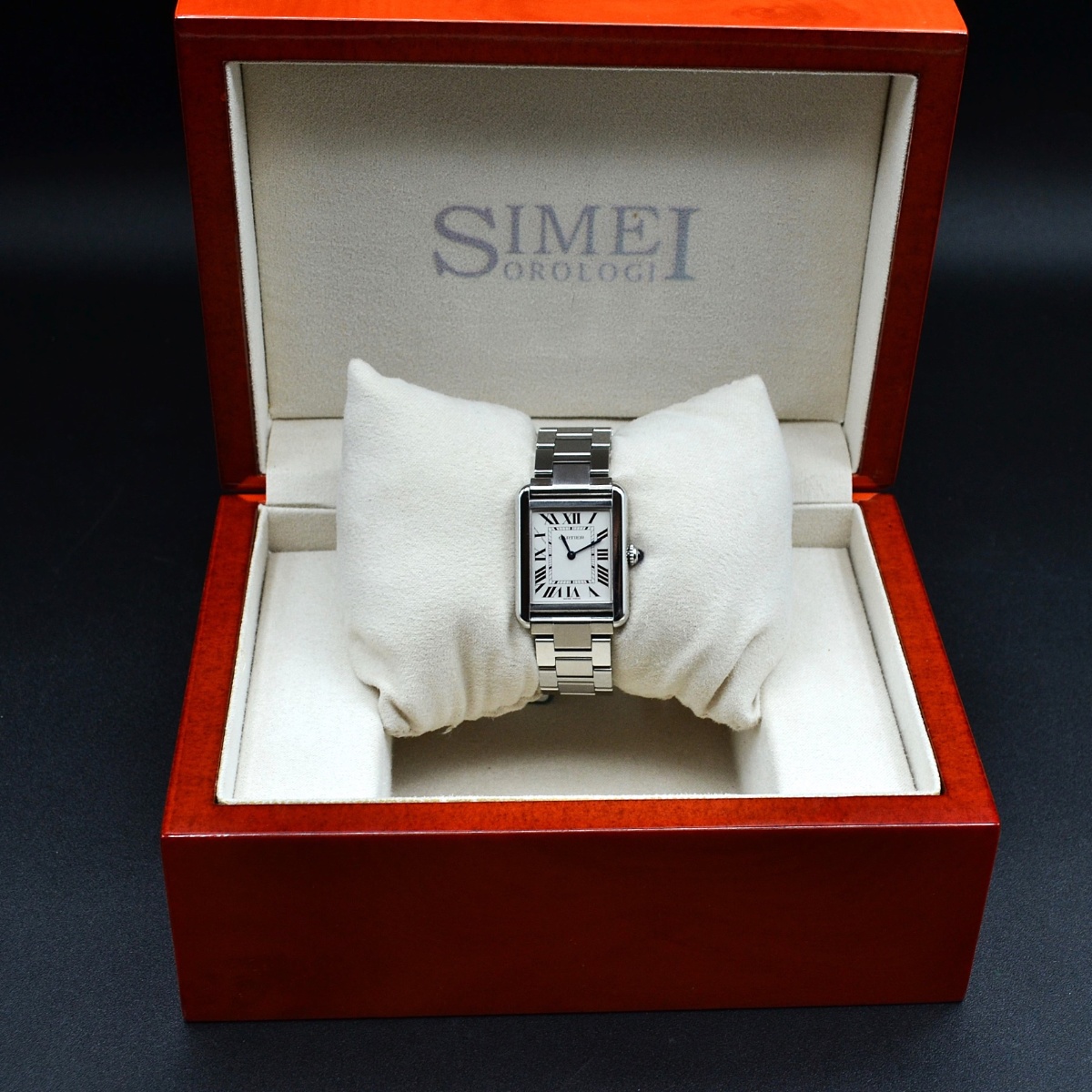 Quadrante con numeri romani e scala minuti “Chemin de fer” (ferrovia) molto elegante.
