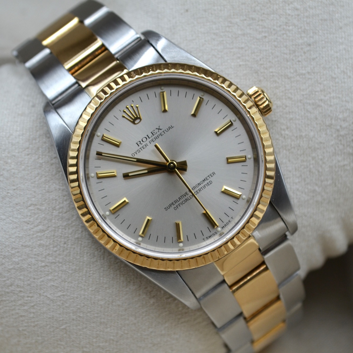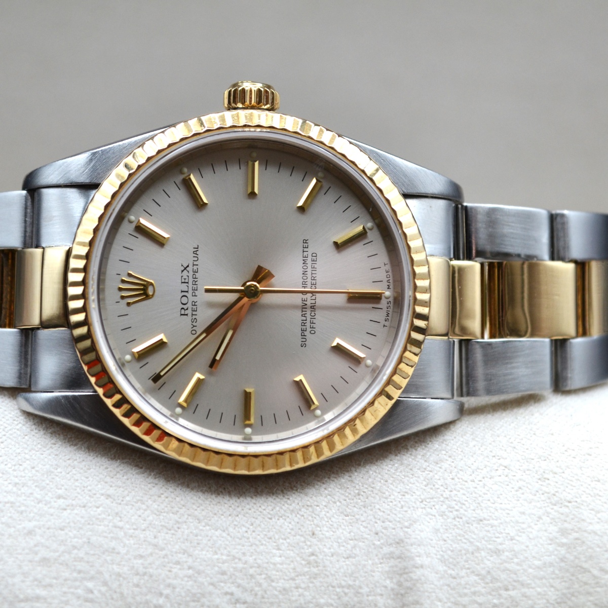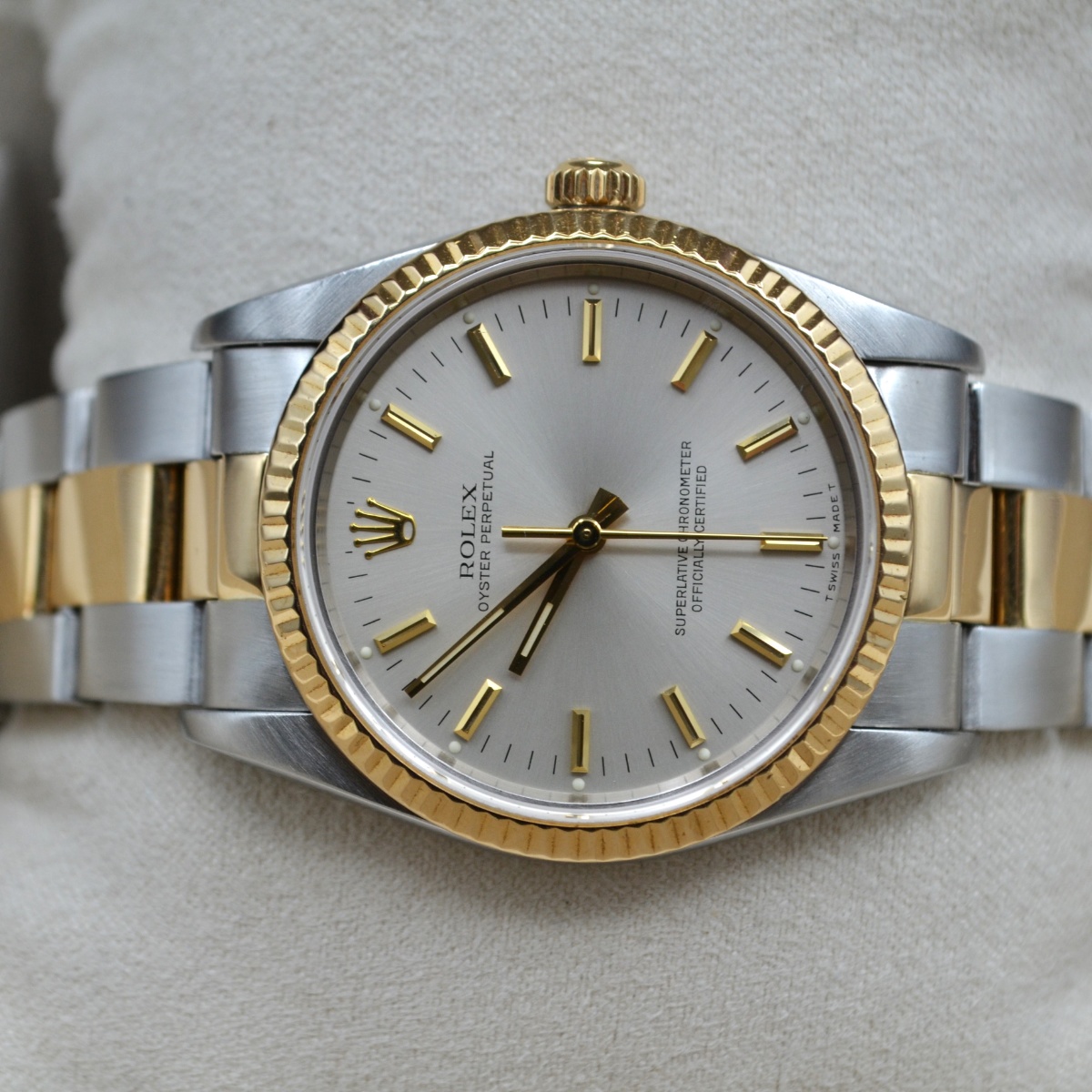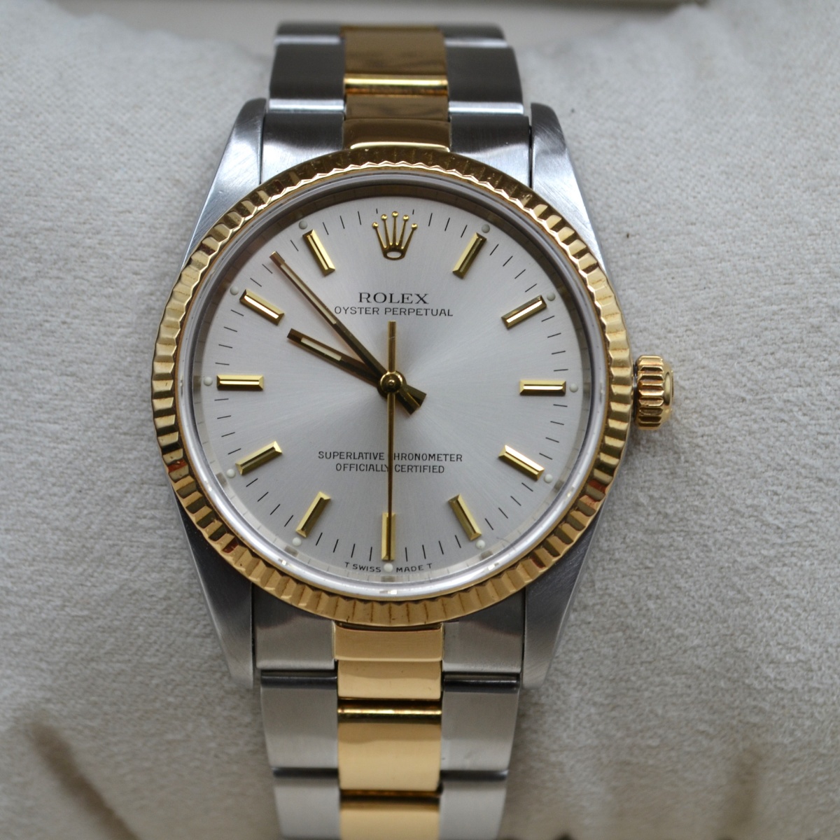 Marca Rolex Modello Oyster Referenza 14233 Anno 1991 Cassa Acciaio Lunetta Oro Giallo Bracciale Acciaio oro 13 maglie mis polso 20cm Vetro Zaffiro |