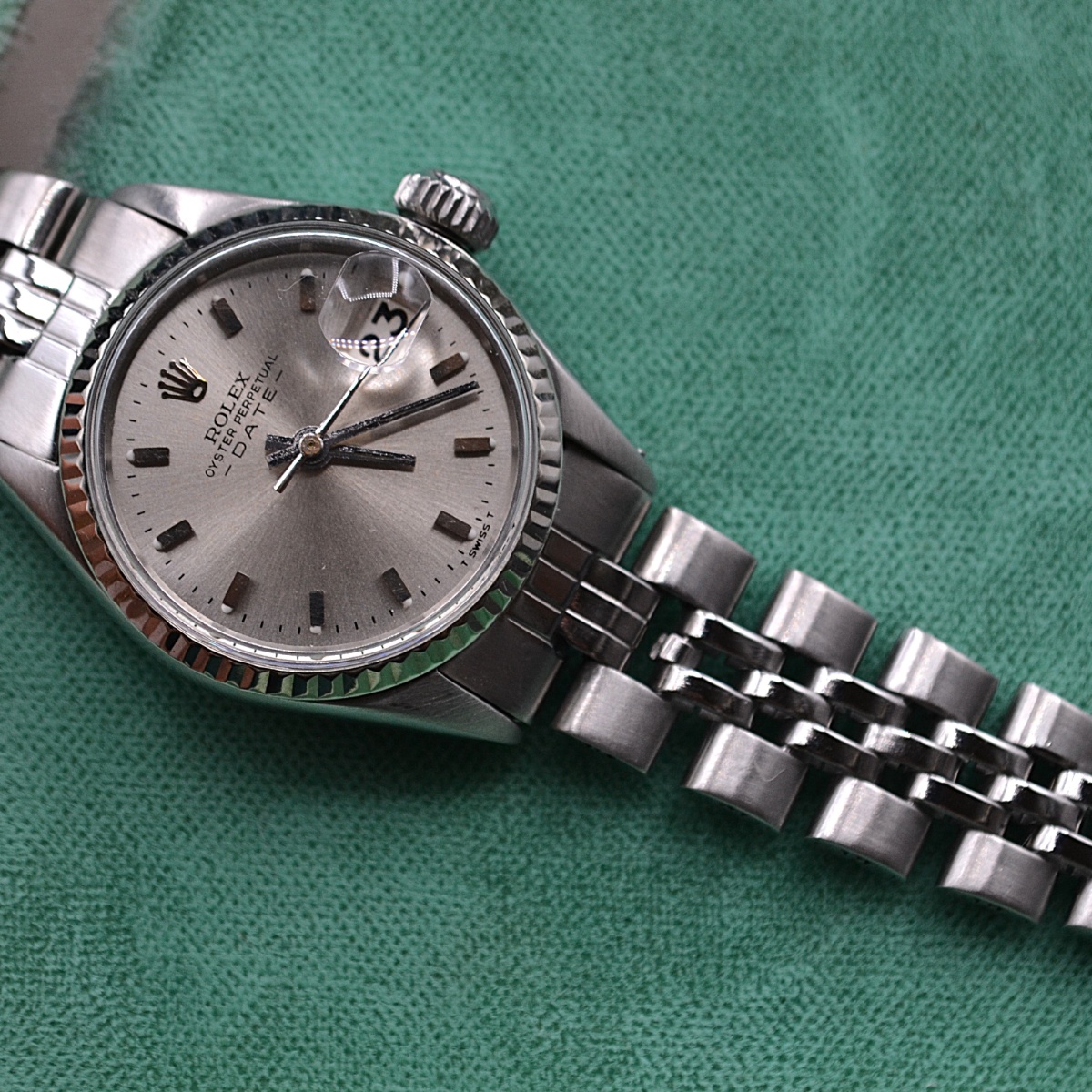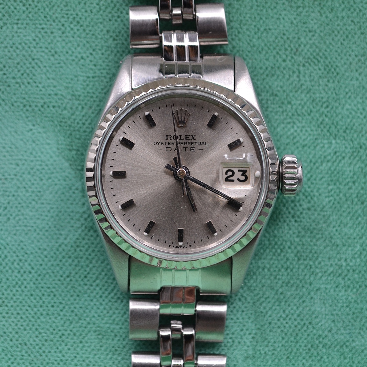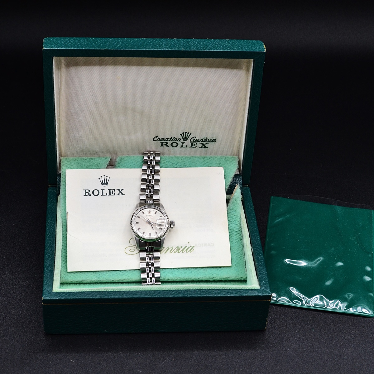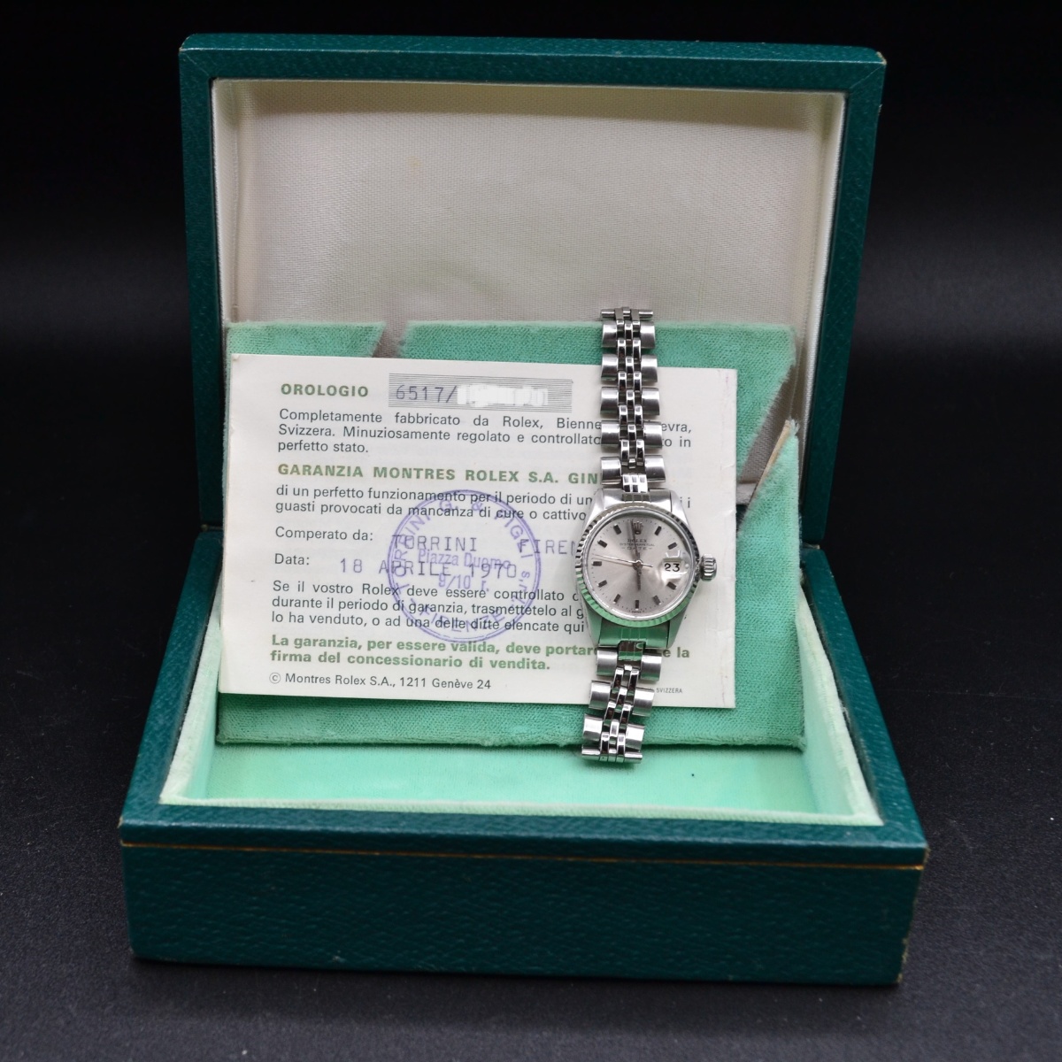 Marca Rolex Modello Lady Referenza 6517 Diametro25mm Cassa Acciaio Bracciale Acciaio Ripiegato Lento mis polso 15/15,5 Vetro plexi |