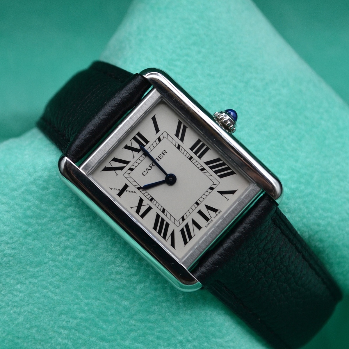 Marca Cartier Modello Tank Solo Cassa Acciaio 24x31 Cinturino Pelle Chiusura Deplo Movimento Quarzo |