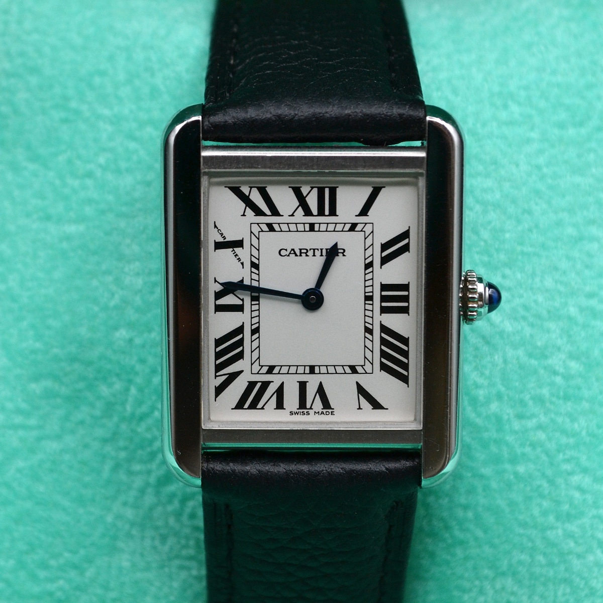 Marca Cartier Modello Tank Solo Cassa Acciaio 24x31 Cinturino Pelle Chiusura Deplo Movimento Quarzo |