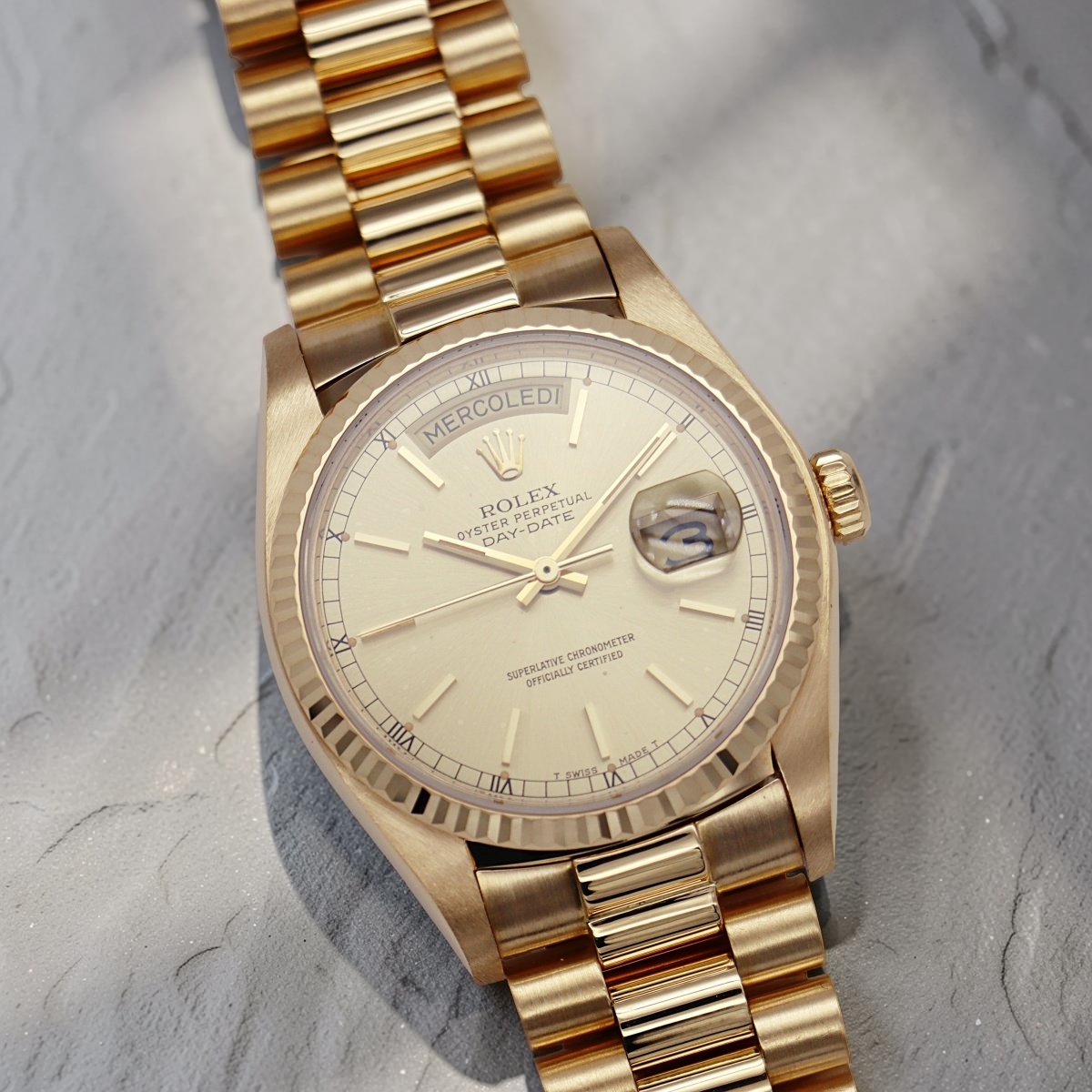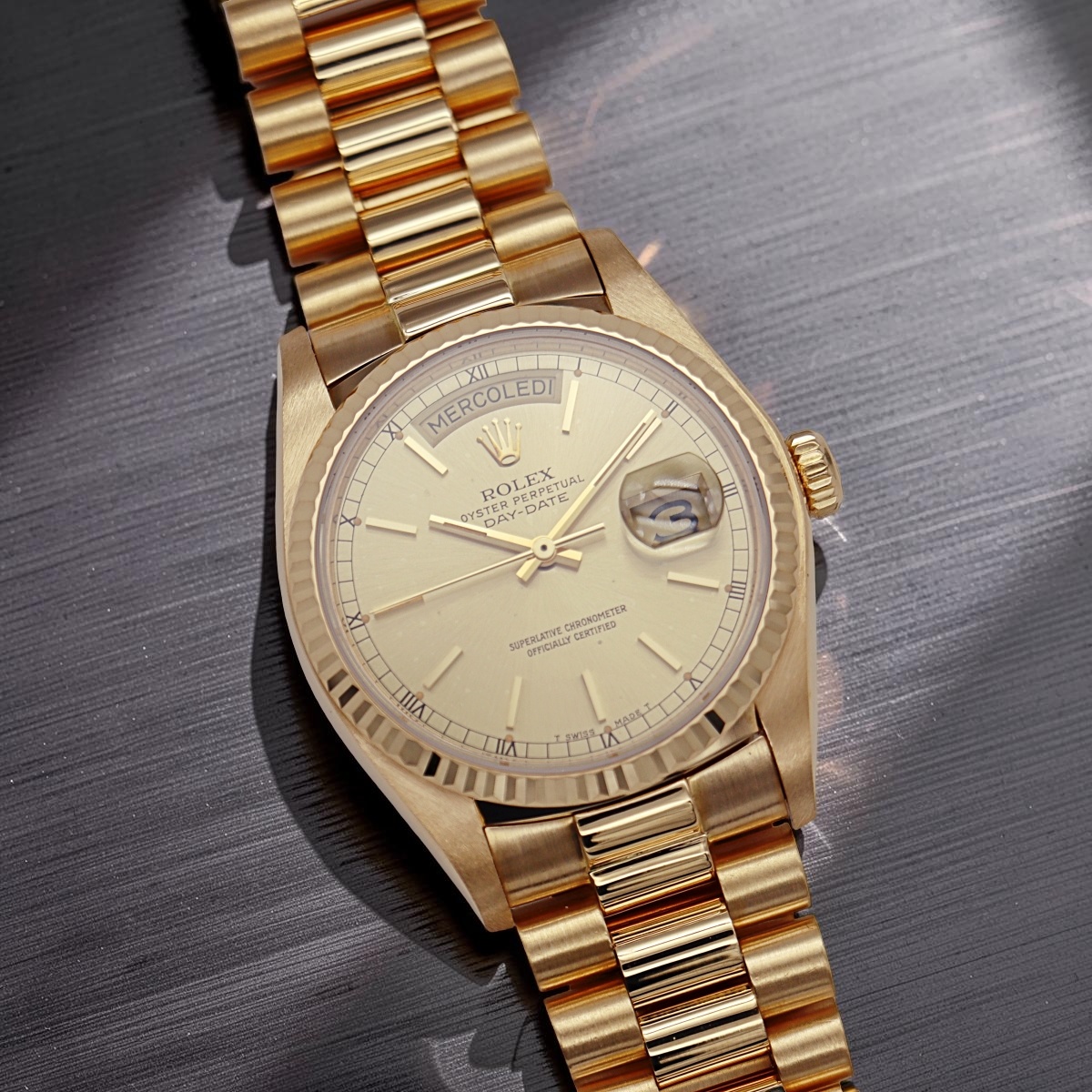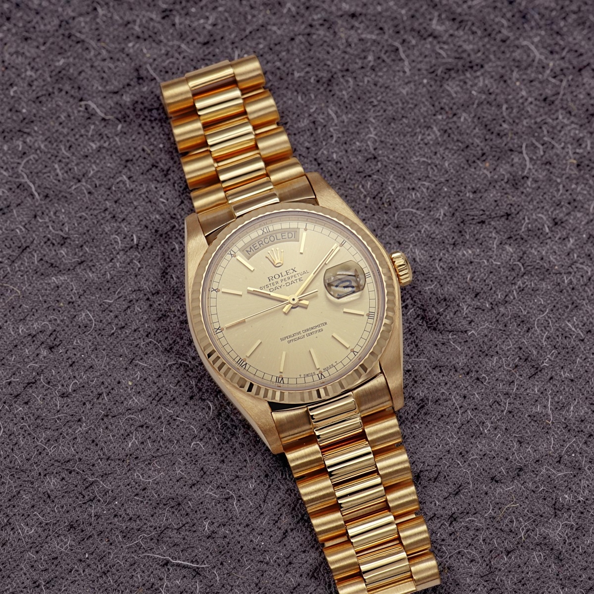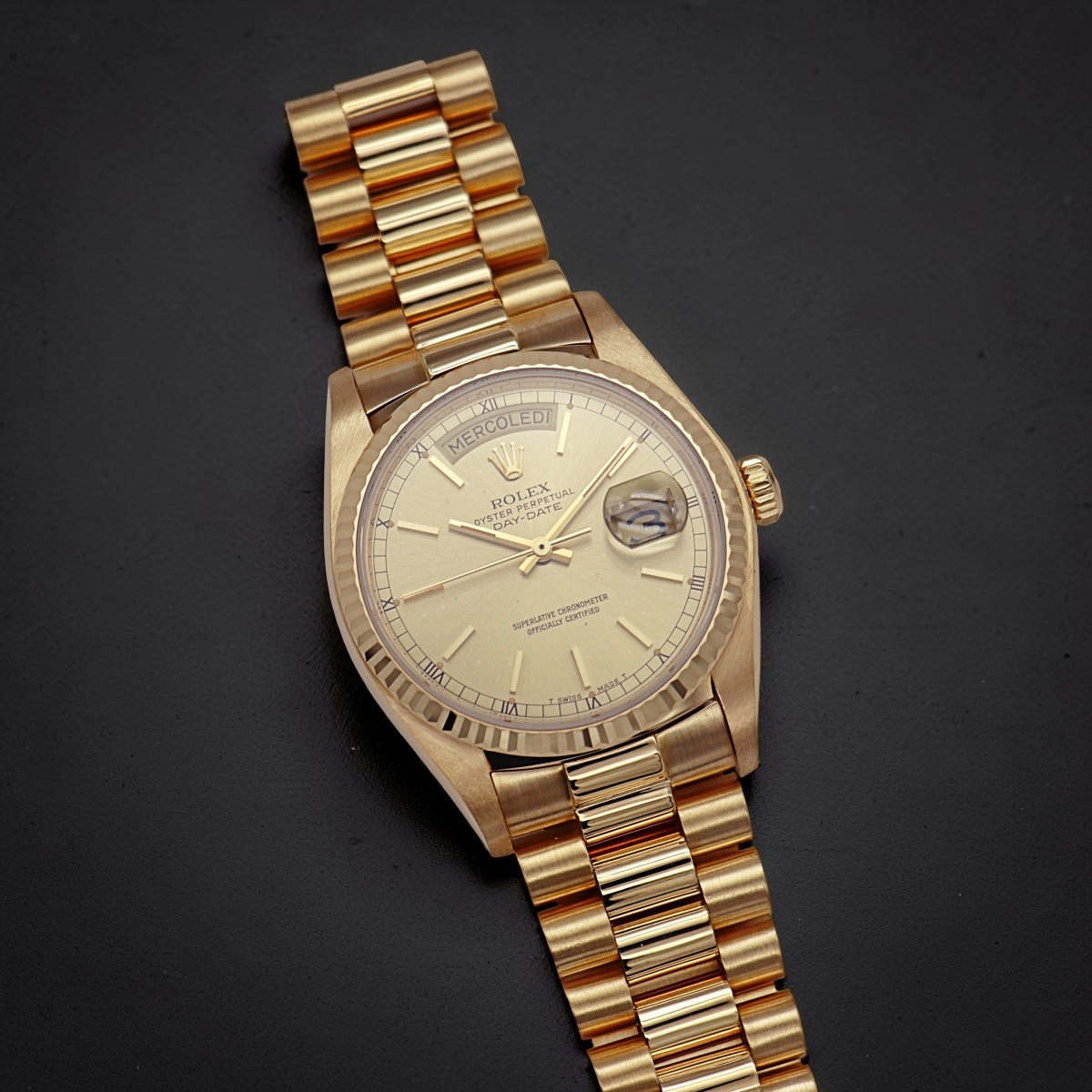 Rolex Day Date 18k yellow gold wristwatch, reference 18038, serial