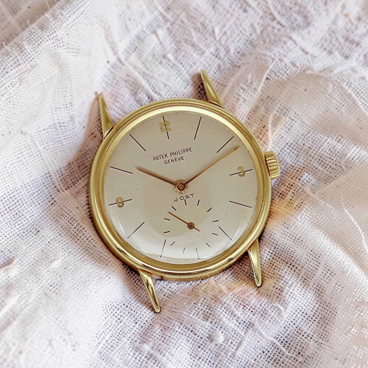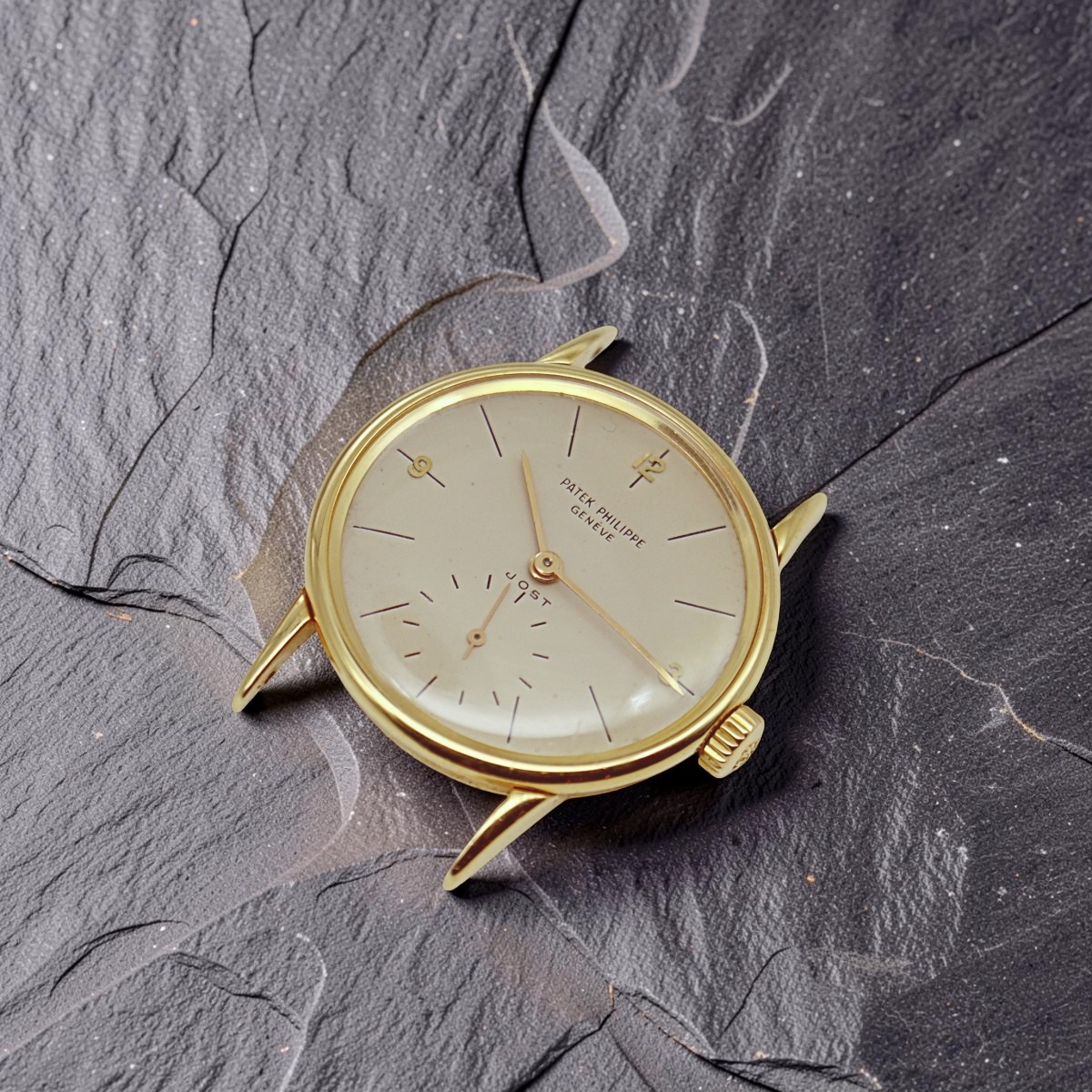 Patek Philippe Calatrava wristwatch, reference 2494, in 18k yellow gold. Serial number517547, manual-winding mechanical movement, caliber 27 AM 400, original dial retailed Jost ( Genova Italy ), year 1952 |