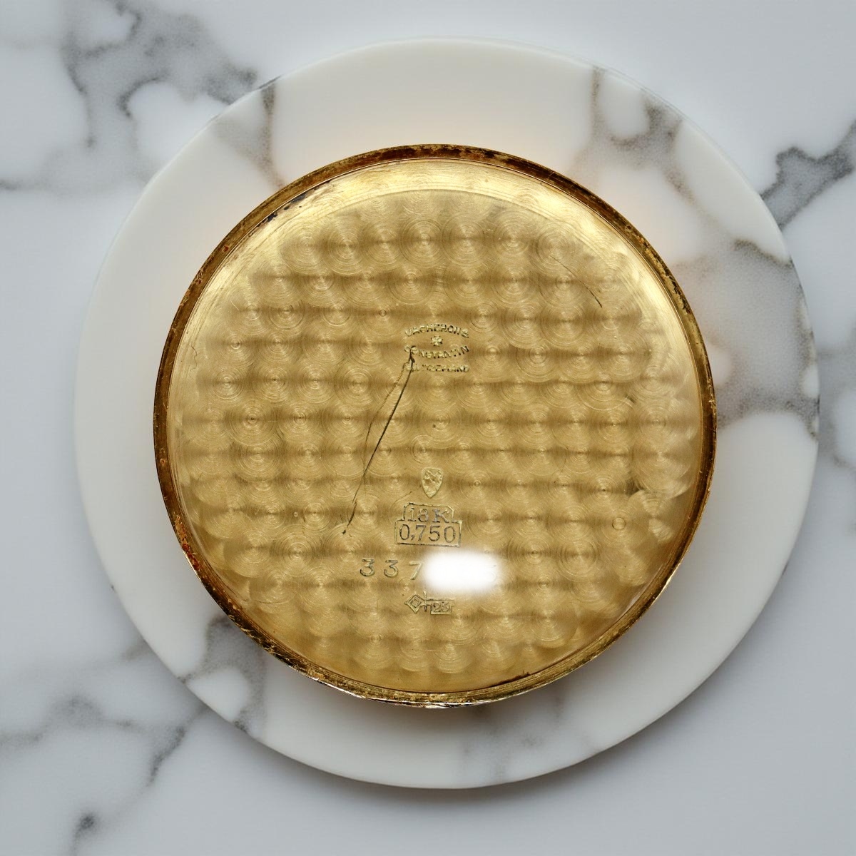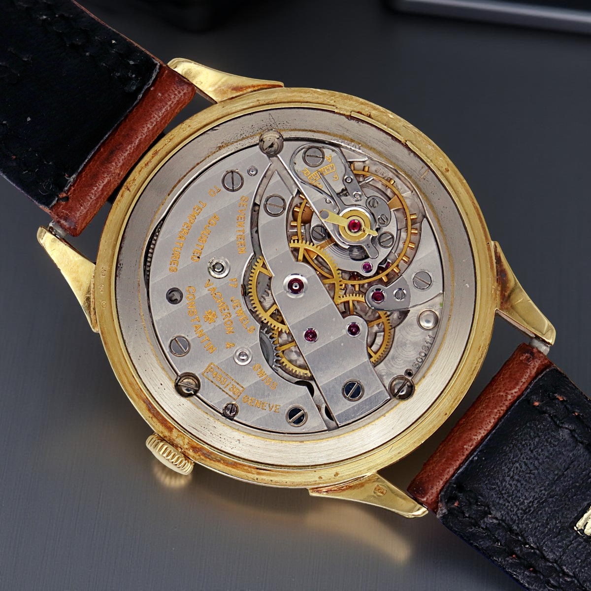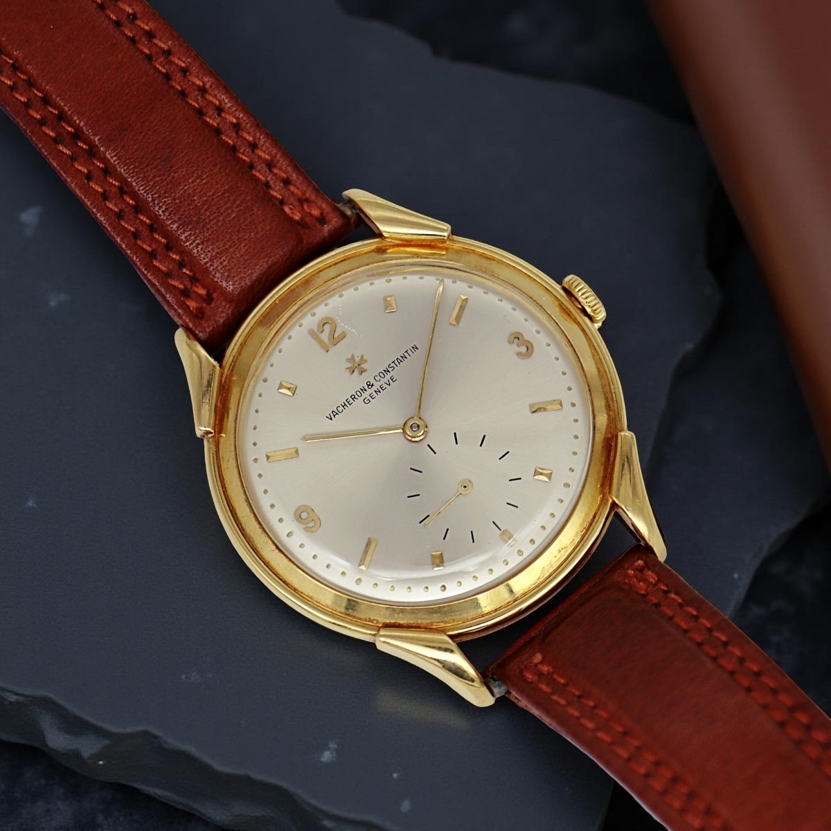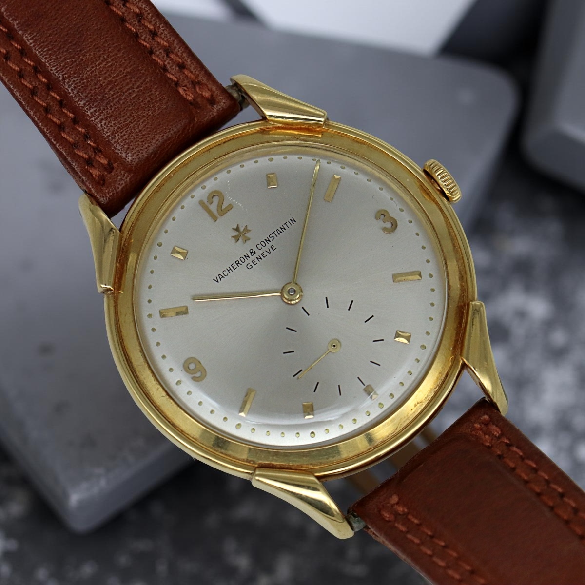 An attractive and rare oversized yellow gold wristwatch Vacheron Constantin with permanent dial and alternating indexes. Small seconds at six o'clock. Case number 337xxx, manual winding caliber P453/3B number 500881, year 1950 |