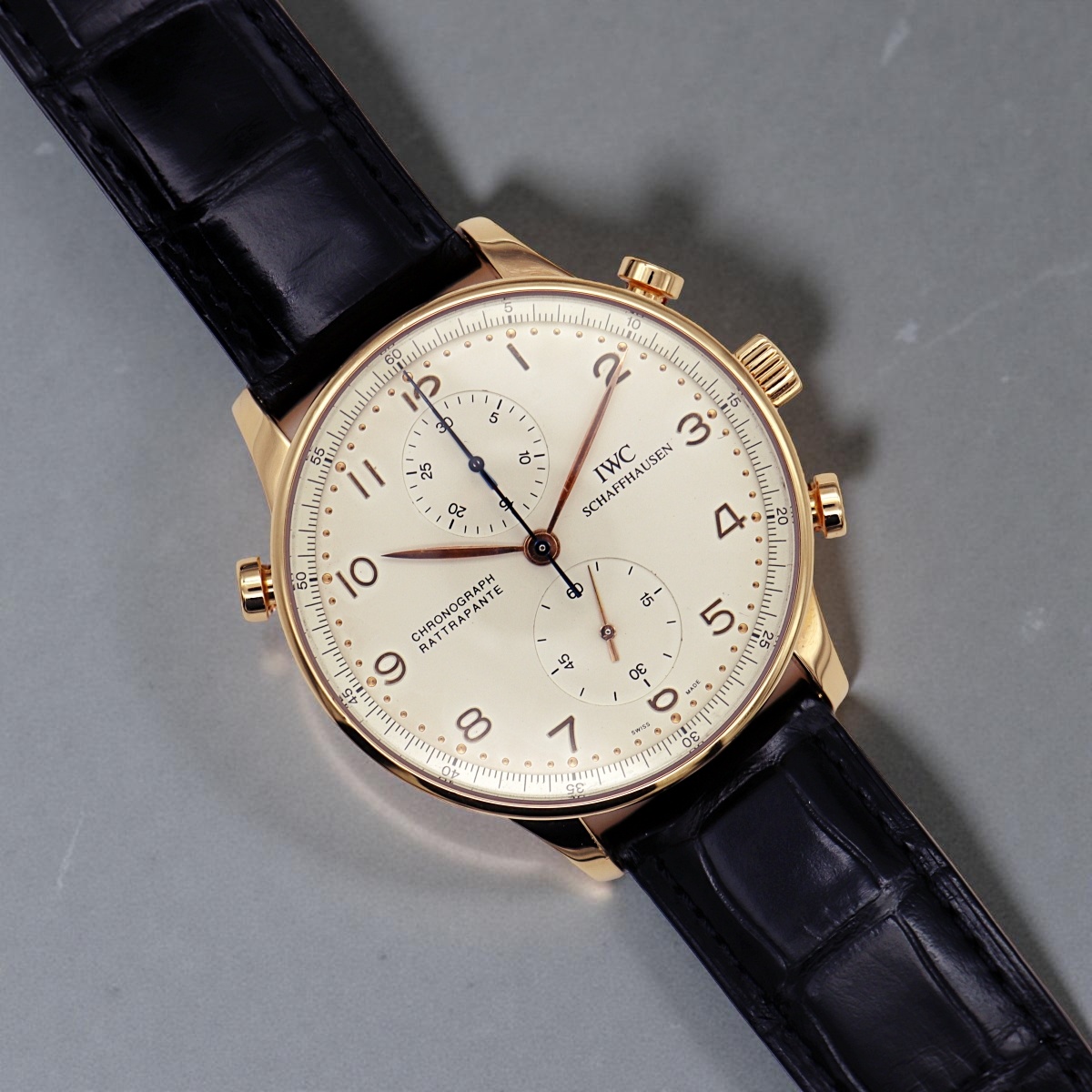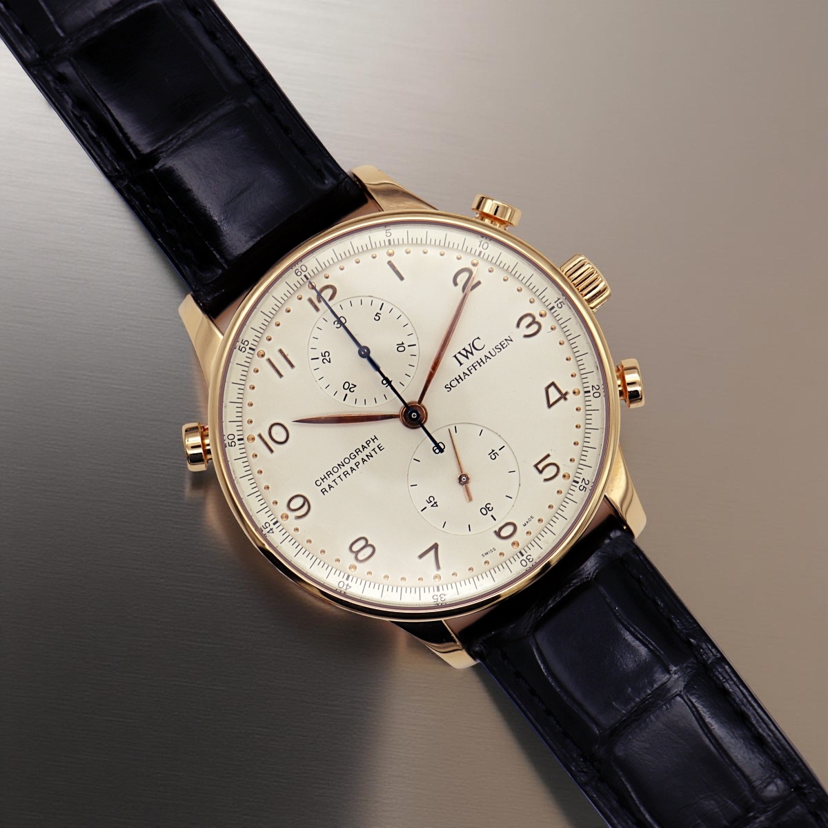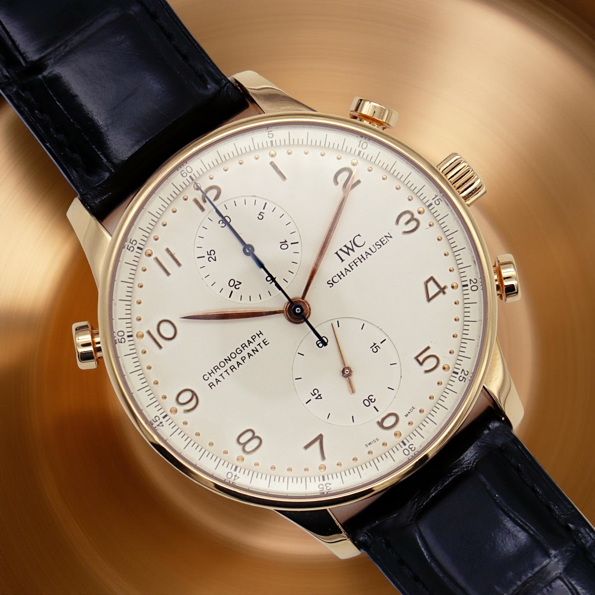 IWC split-seconds chronographe in rose gold with white dial, reference IW 3712, serial number 259xxxx, year 2000, watch full set and like new |