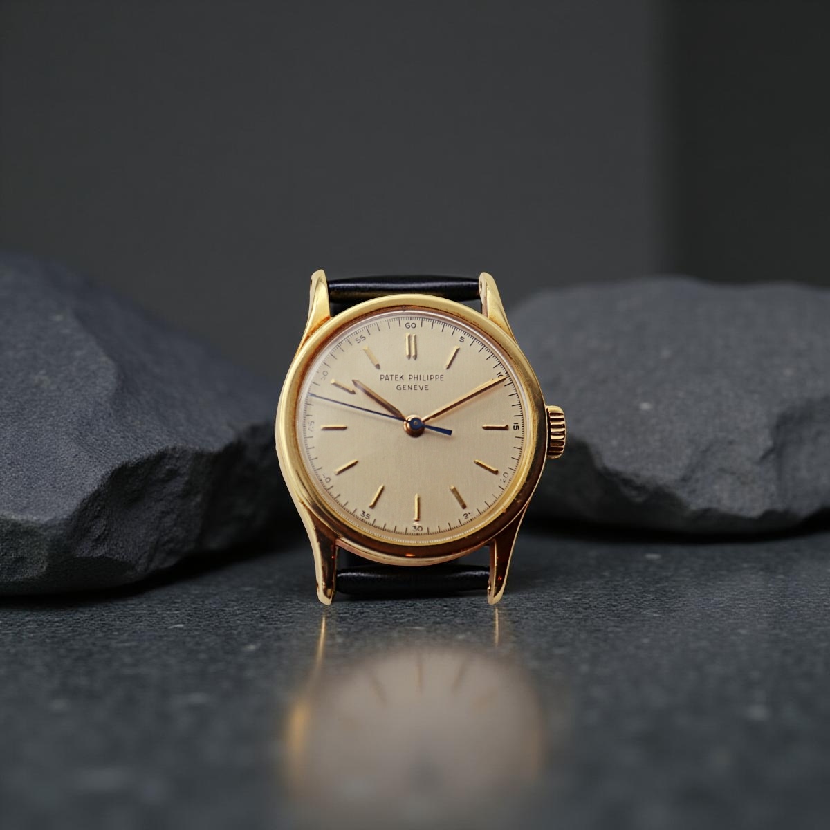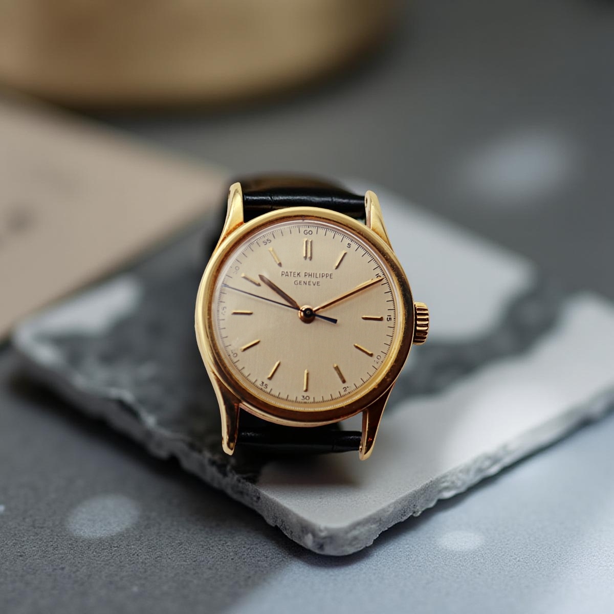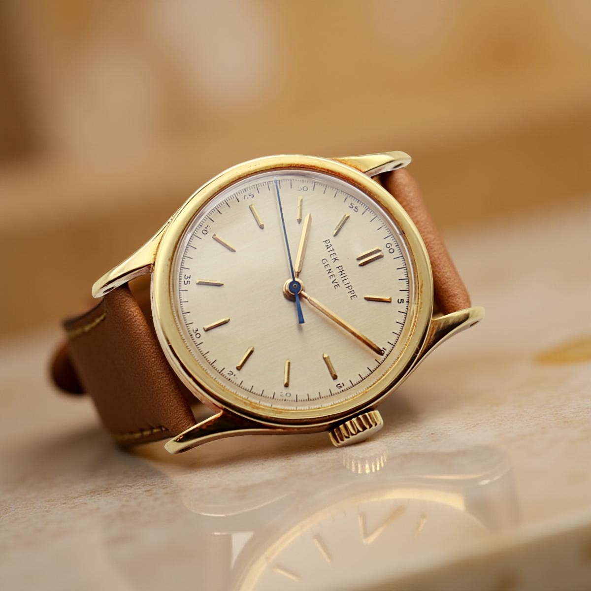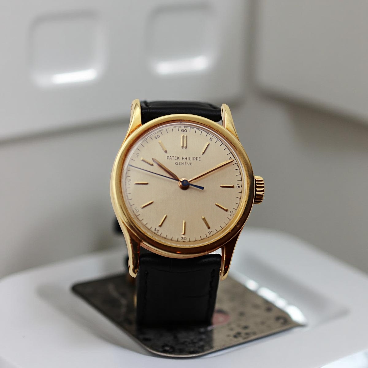 Patek Philippe Calatrava 2457 yellow gold wristwatch with central seconds, serial number 304125, manual winding caliber 12 27 SC, year 1951, case size 31mm, accompanied by Extract from the Patek Philippe archives |
