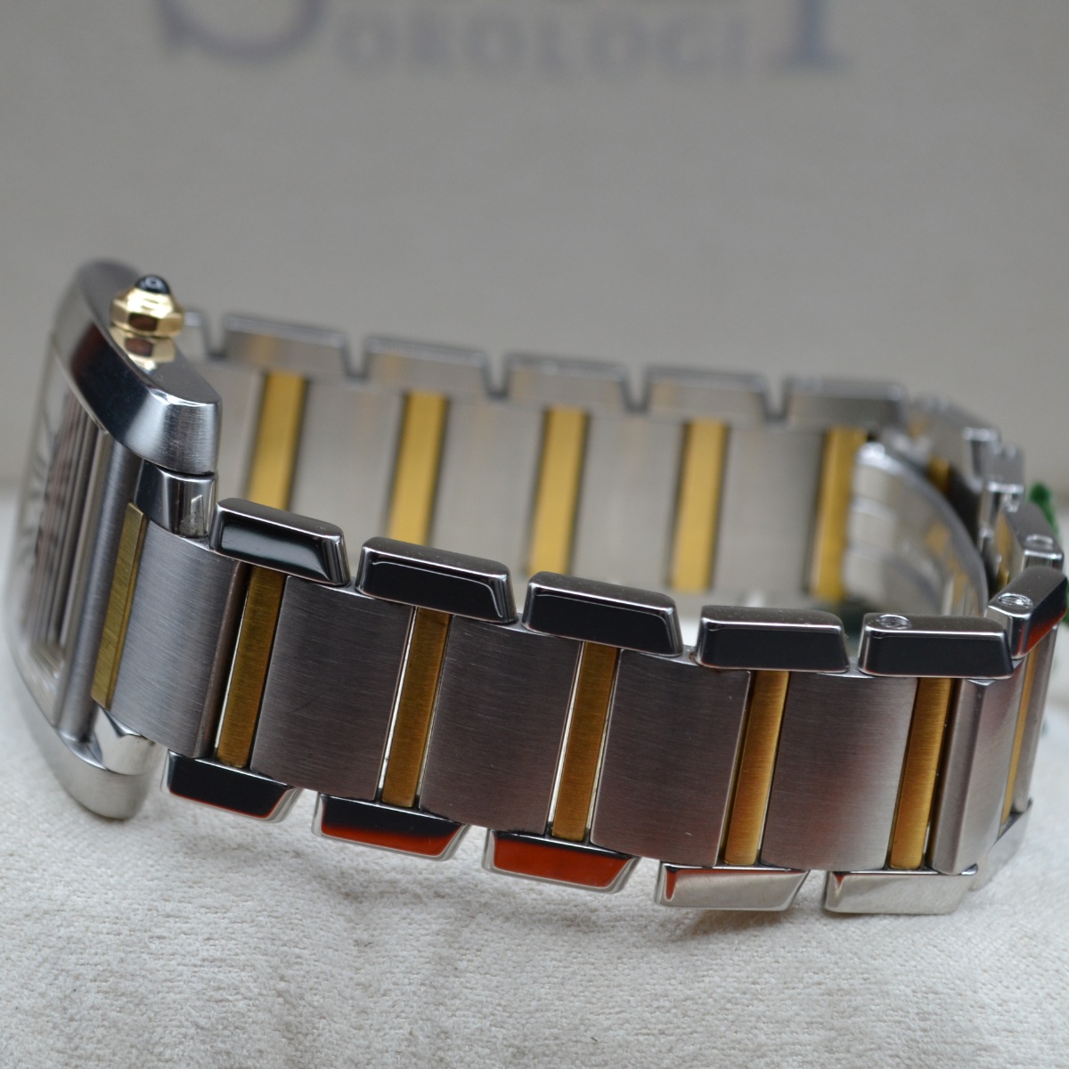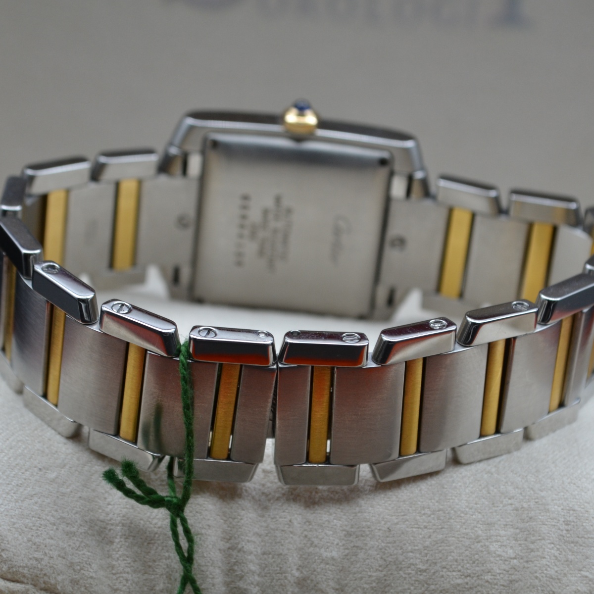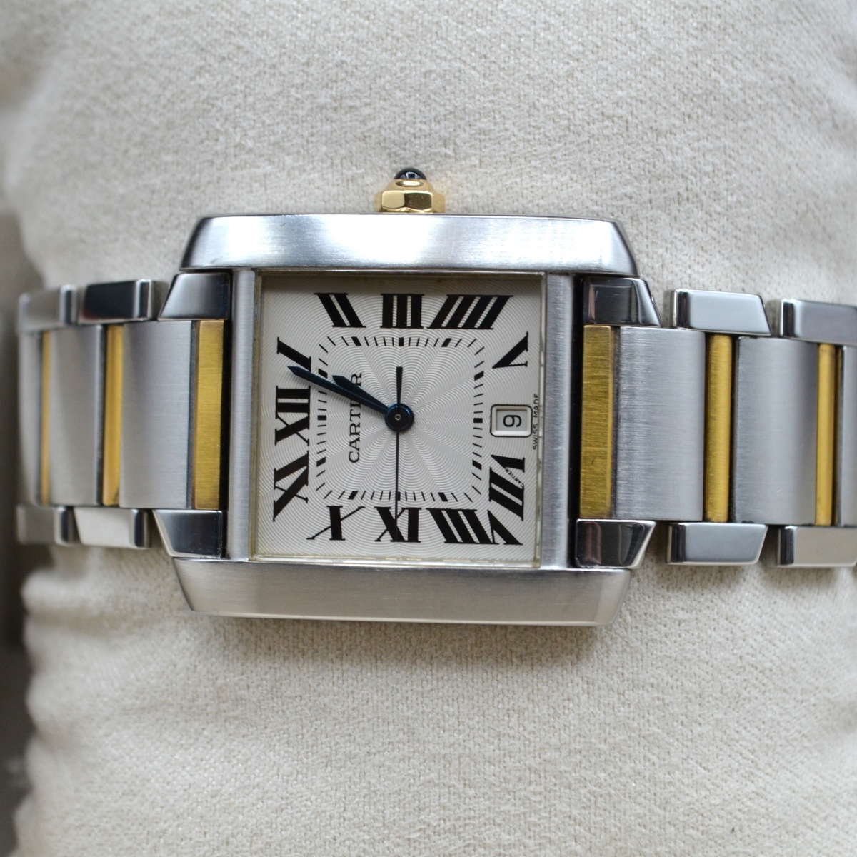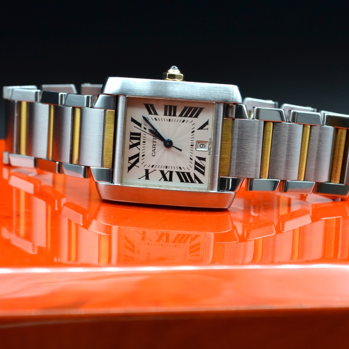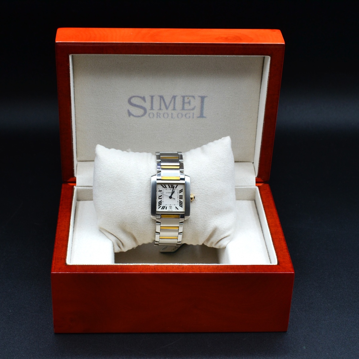 La referenza 2302 è una delle versioni più apprezzate del Tank Française automatico in acciaio e oro, prodotta principalmente tra fine anni ’90 e primi anni 2000. È considerata la versione “media” automatica della linea, molto equilibrata nelle proporzioni.