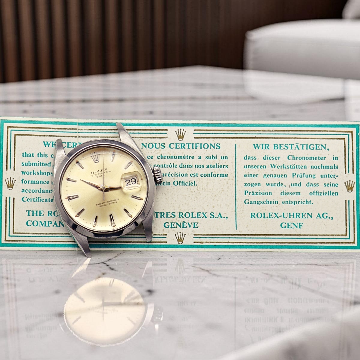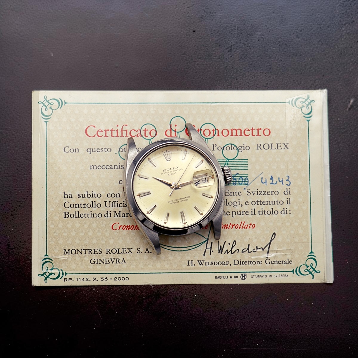 complete with original guarantee and chronometer certificate from 1963. |