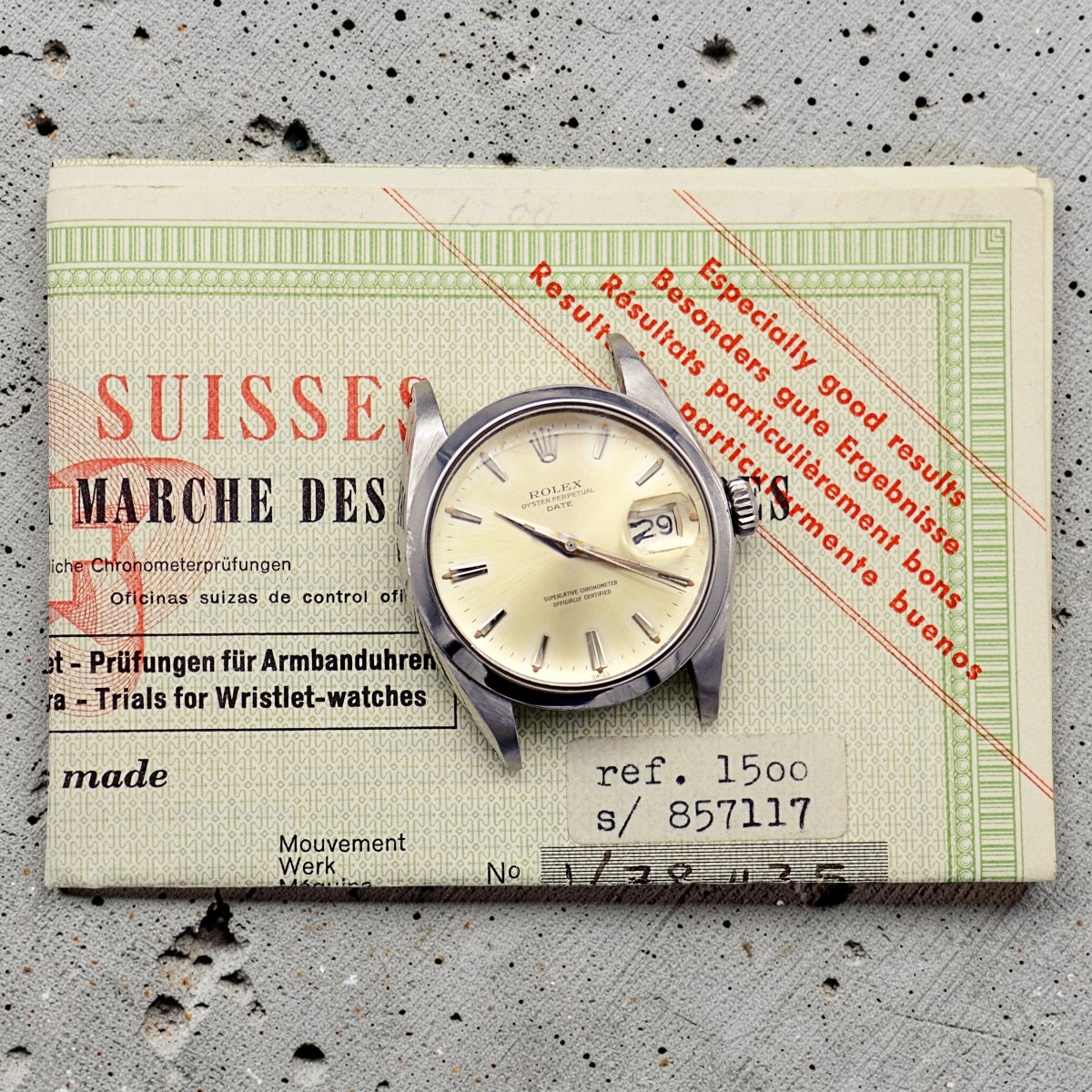 Rolex Date steel wristwatch, reference 1500, serial number 857xxx
