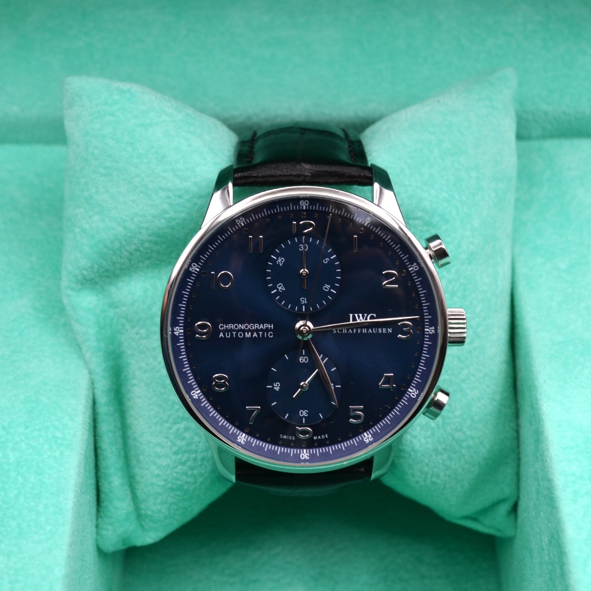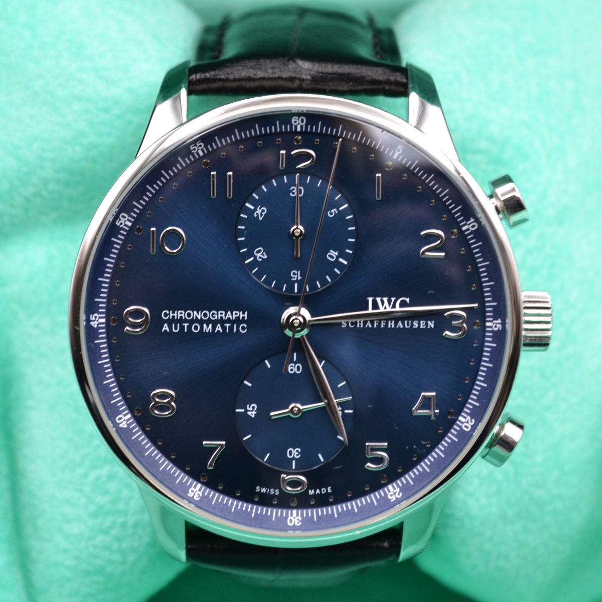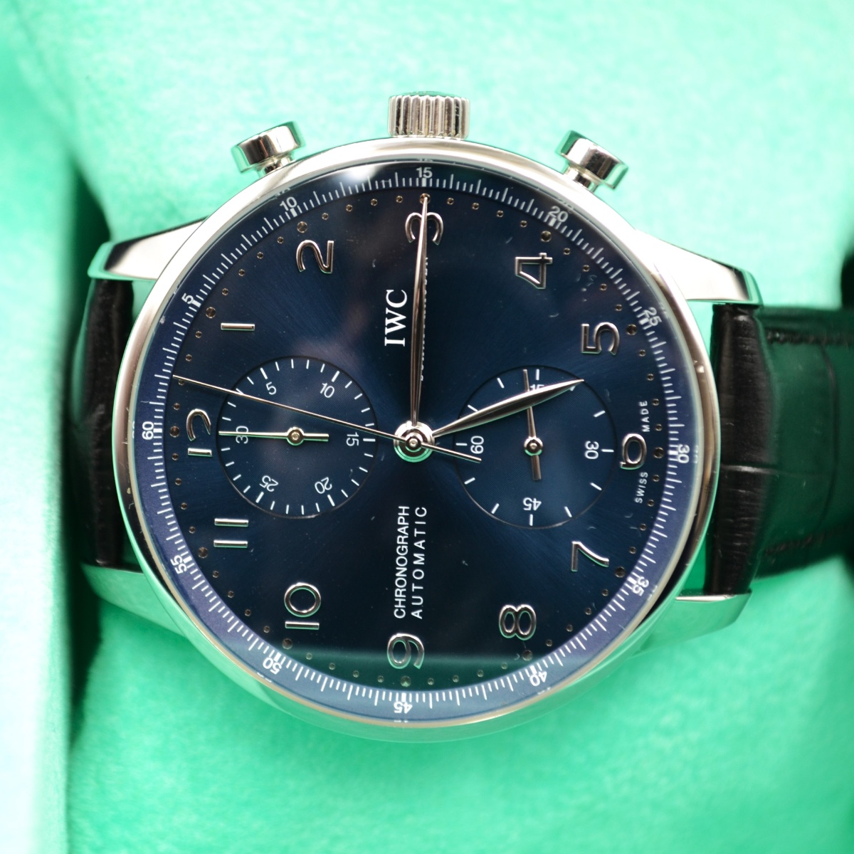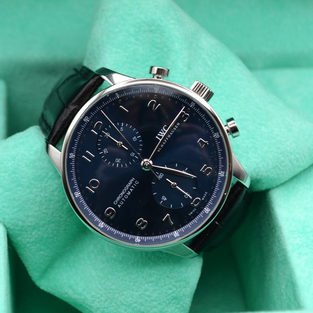 Garanzia ufficiale 2018 Cronografo automatico Cassa in acciaio 41mm Quadrante blu con numeri arabi Cinturino in pelle Chiusura deployante |